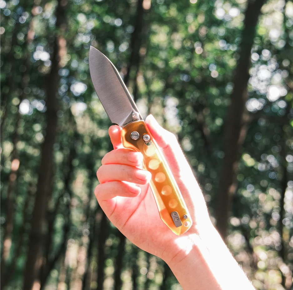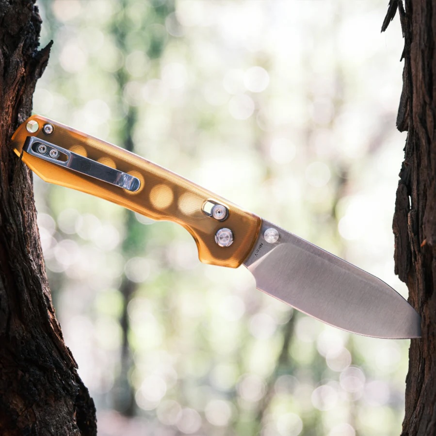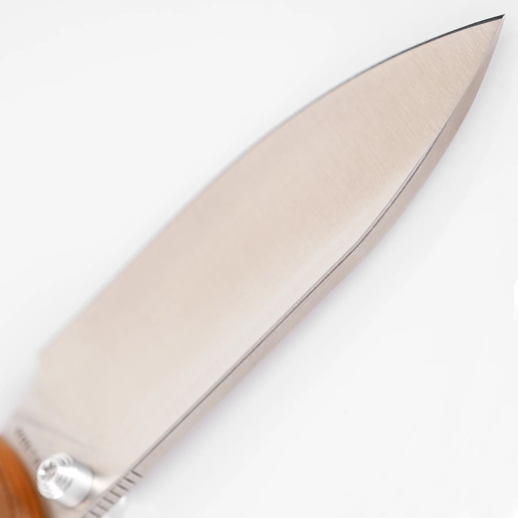 Nóż wykonano ze stali Nitro-V. Nitro-V to stal nierdzewna, oparta na znanej stali AEB-L, lecz z dodatkiem azotu i wanadu – co nadaje jej zwiększoną wytrzymałość, twardość i odporność na korozję. Nitro-V to stal wybierana doostrzy wymagających cienkiego grzbietu i ostrego brzegu – takich jak noże kuchenne i brzytwy. Nitro-V sprawdza się doskonale jako stal do mniejszych składanych noży, ponieważ pozwala na wykonanie twardszego ostrza przy znacznie cieńszym grzbiecie bez ryzyka kruchości krawędzi lub utraty ostrości. Twórcy noży i ich użytkownicy doceniają Nitro-V przez wzgląd na łatwość w jej ostrzeniu i stabilność krawędzi tnącej.