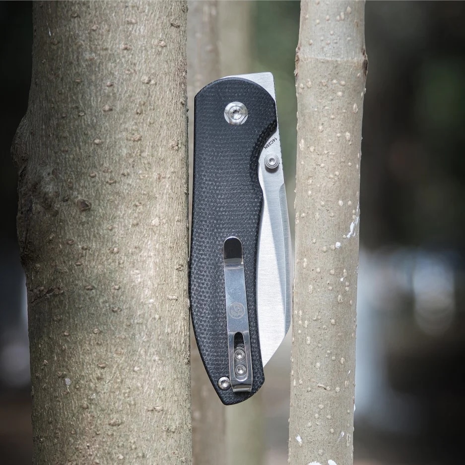 Stalowy klips mocujący umiejscowiony w tylnej części rękojeści zapewnia stabilne przenoszenie w kieszeni, zamocowanie w plecaku, sakwie, nerce itd. Klips wykonano ze stali nierdzewnej i zamontowano go w pozycji tip-up (wierzchołek ostrza skierowany do góry w momencie zaczepienia noża klipsem).
