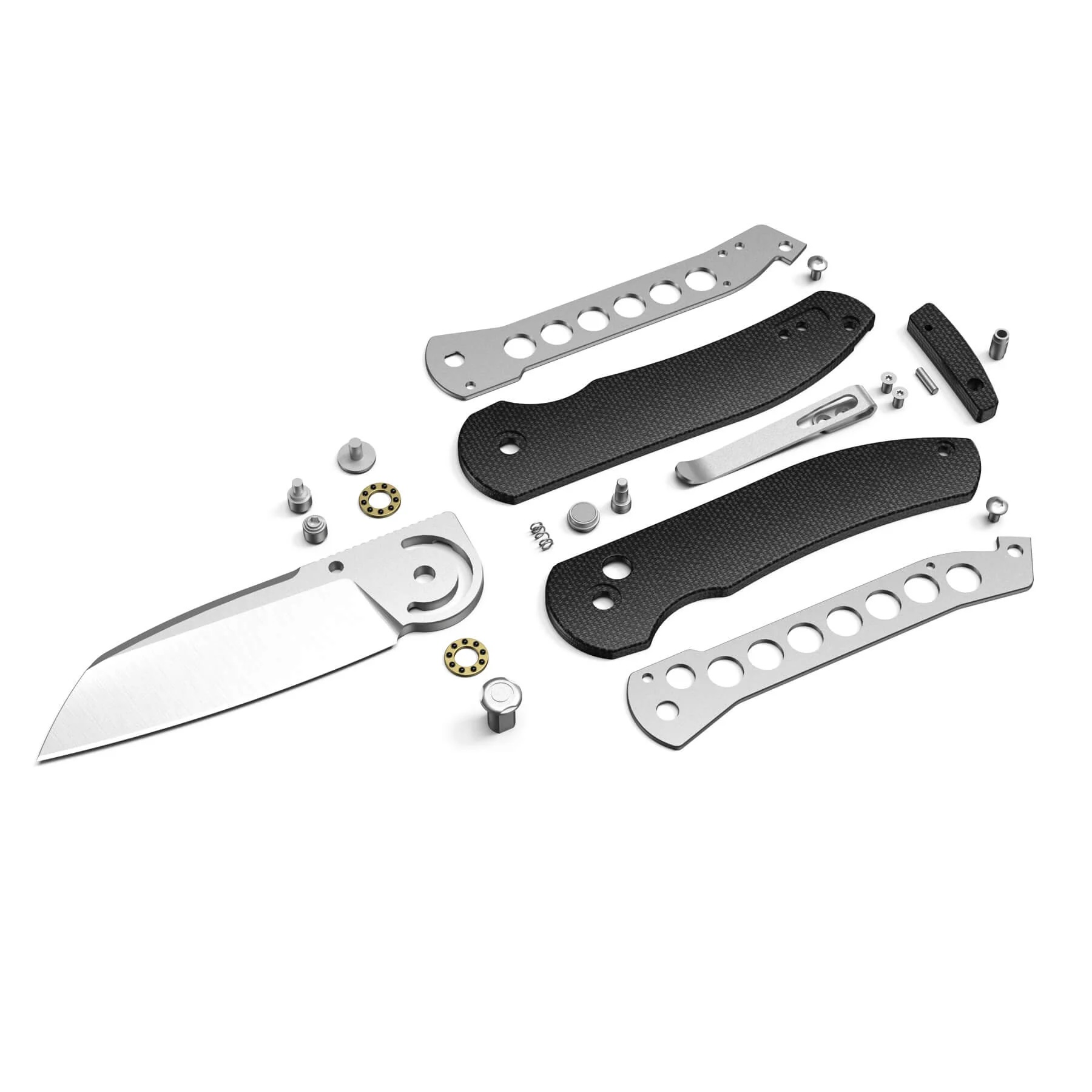 - Rękojeść: okładki z micarty (black | czarny) osadzone na stalowym korpusie (linersy), backspacer z micarty (black | czarna), klips do przenoszenia ze stali nierdzewnej (Tip-Up, right-carry | jednostronny, praworęczny)