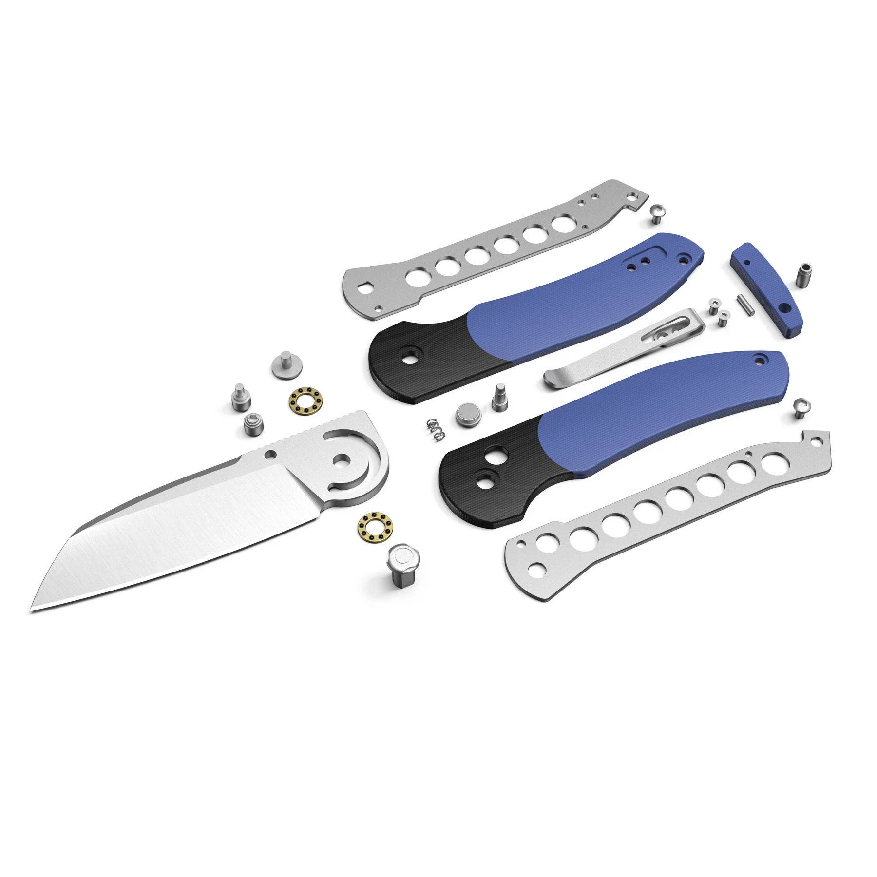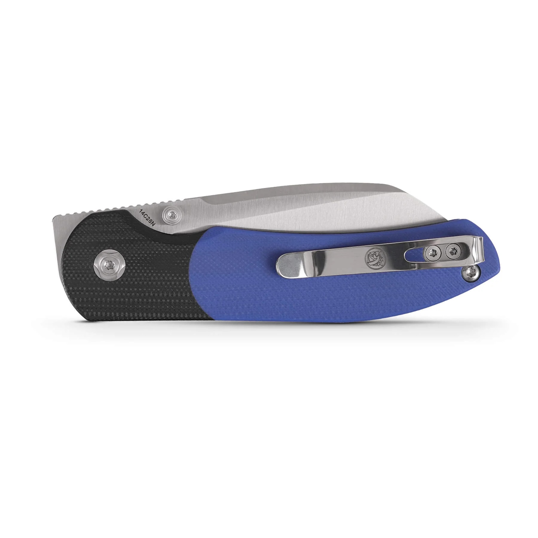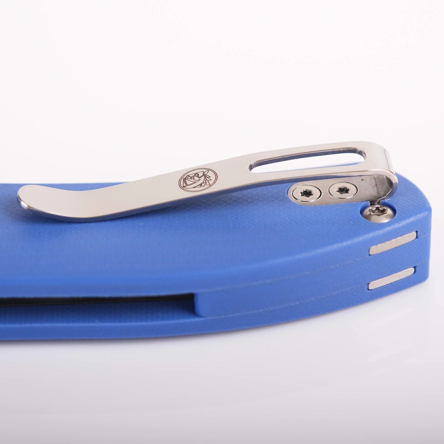 - Rękojeść: okładki z G10 (blue / black | połączenie niebieskiego z czarnym) osadzone na stalowym korpusie (linersy), backspacer z G10 (blue | niebieski), klips do przenoszenia ze stali nierdzewnej (Tip-Up, right-carry | jednostronny, praworęczny)