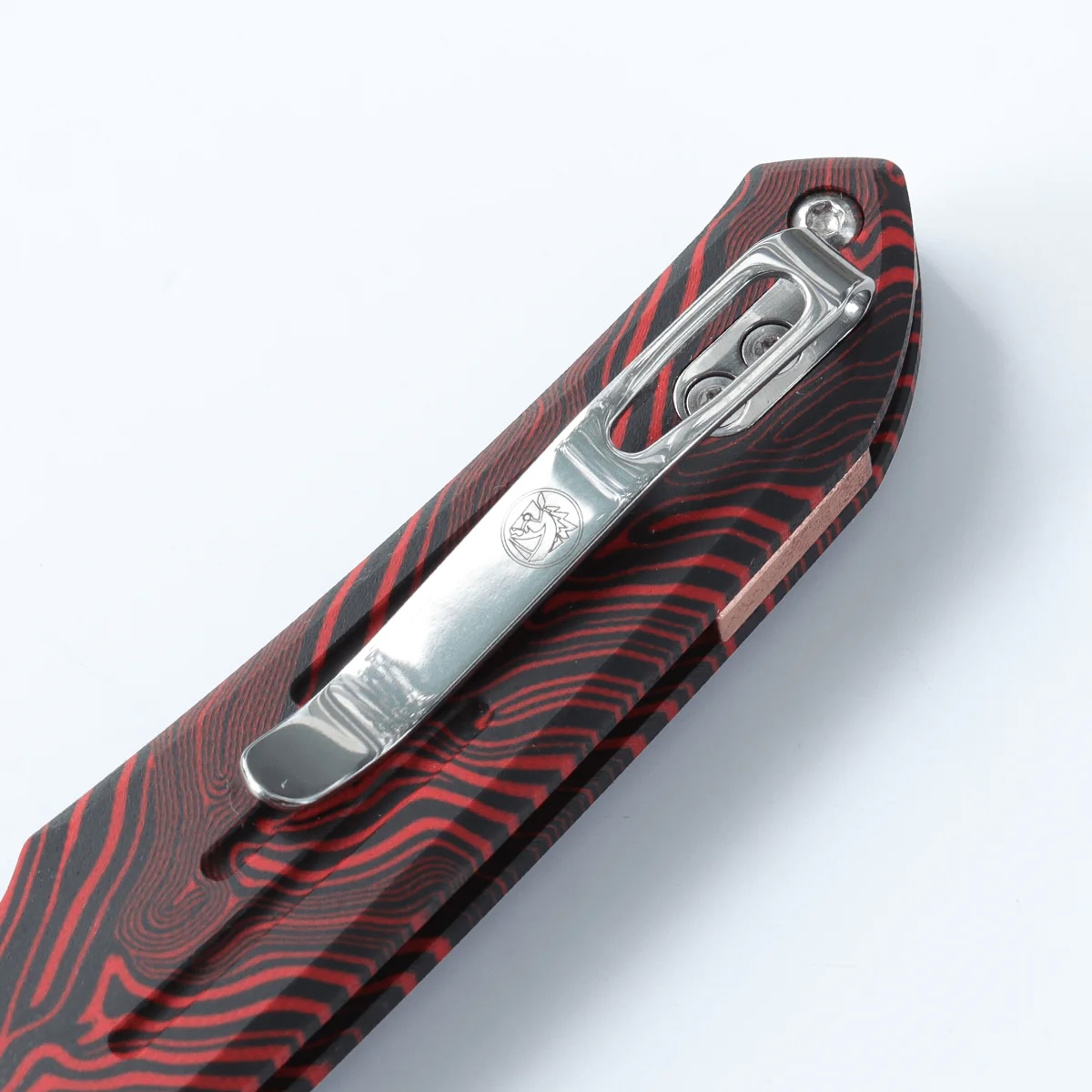 Stalowy klips mocujący umiejscowiony w tylnej części rękojeści zapewnia stabilne przenoszenie w kieszeni, zamocowanie w plecaku, sakwie, nerce itd. Klips wykonano ze stali nierdzewnej i zamontowano go w pozycji tip-up (wierzchołek ostrza skierowany do góry w momencie zaczepienia noża klipsem).