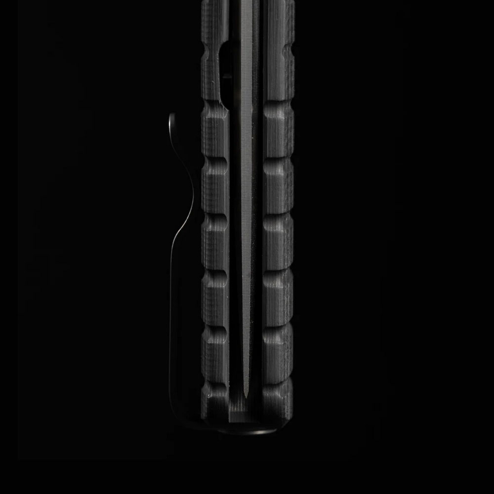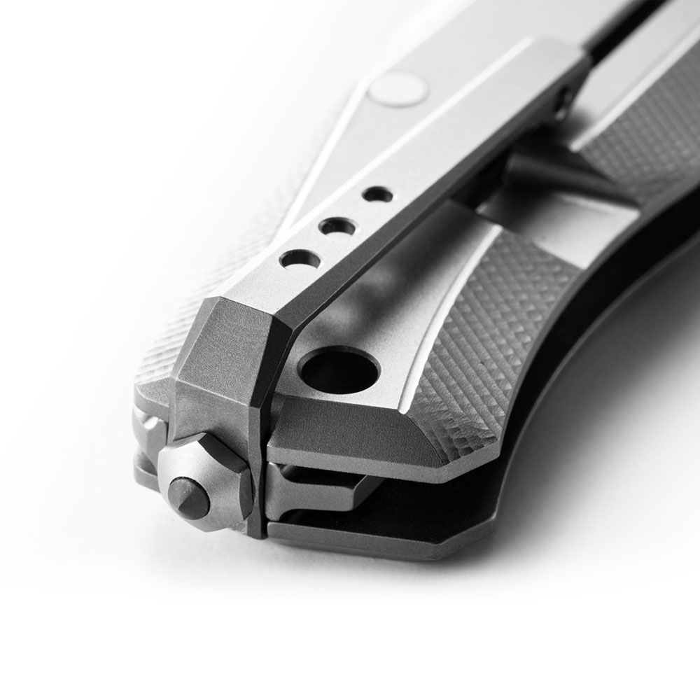 Otwieranie noża odbywa się za sprawą wystającego z głowni flippera, który po rozłożeniu ostrza służy jako jelec zabezpieczający przed ześlizgnięciem się dłoni na krawędź tnącą i potencjalnymi urazami. Nóż posiada stabilne i wytrzymałe zabezpieczenie przed przypadkowym zamknięciem frame lock z wkładką z hartowanej stali. Blokada frame lock wyposażona została w ceramiczny detent ball prowadzący ostrze przy otwieraniu i zamykaniu noża bez porysowania ostrza. Po zamknięciu ostrza, we właściwej pozycji utrzymuje je stoppin z hartowanej stali nierdzewnej.
