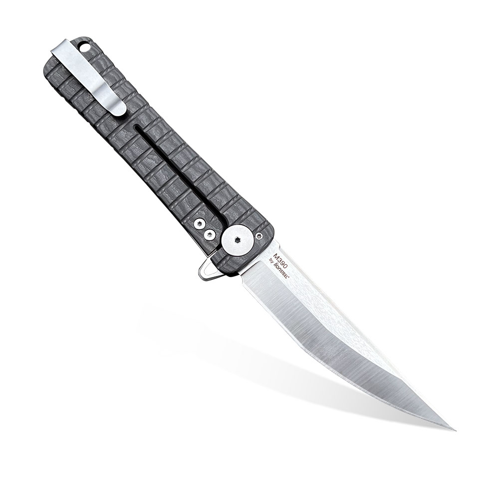 Ostrze OZFS01 Osoraku Zukuri Folder wykonane zostało ze stali M390. M390 to jedna z kilku stali dostępnych na rynku znajdujących się w topie jakościowym materiałów służących do produkcji noży premium. Najlepsze jej właściwości uzyskuje się poprzez właściwe wykonanie procesu hartowania, w którym bezbłędnie muszą być przeprowadzone 3 etapy: utwardzanie, chłodzenie kriogeniczne (wymrażanie) i odpuszczanie. Właściwie przygotowane ostrze z M390 jest ekstremalnie wytrzymałe na przeciążenia, niezwykle długo pozostaje ostre (bardzo wolno się ściera) i ma doskonałe właściwości antykorozyjne.