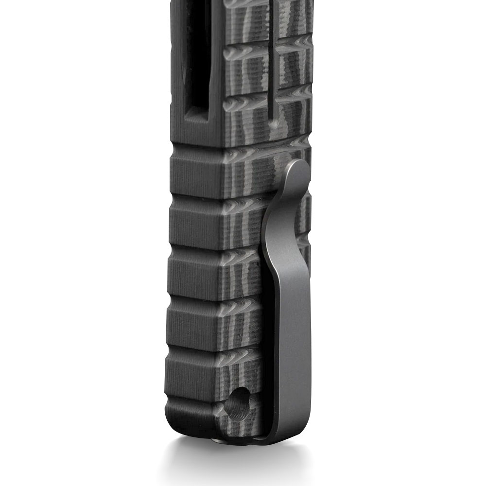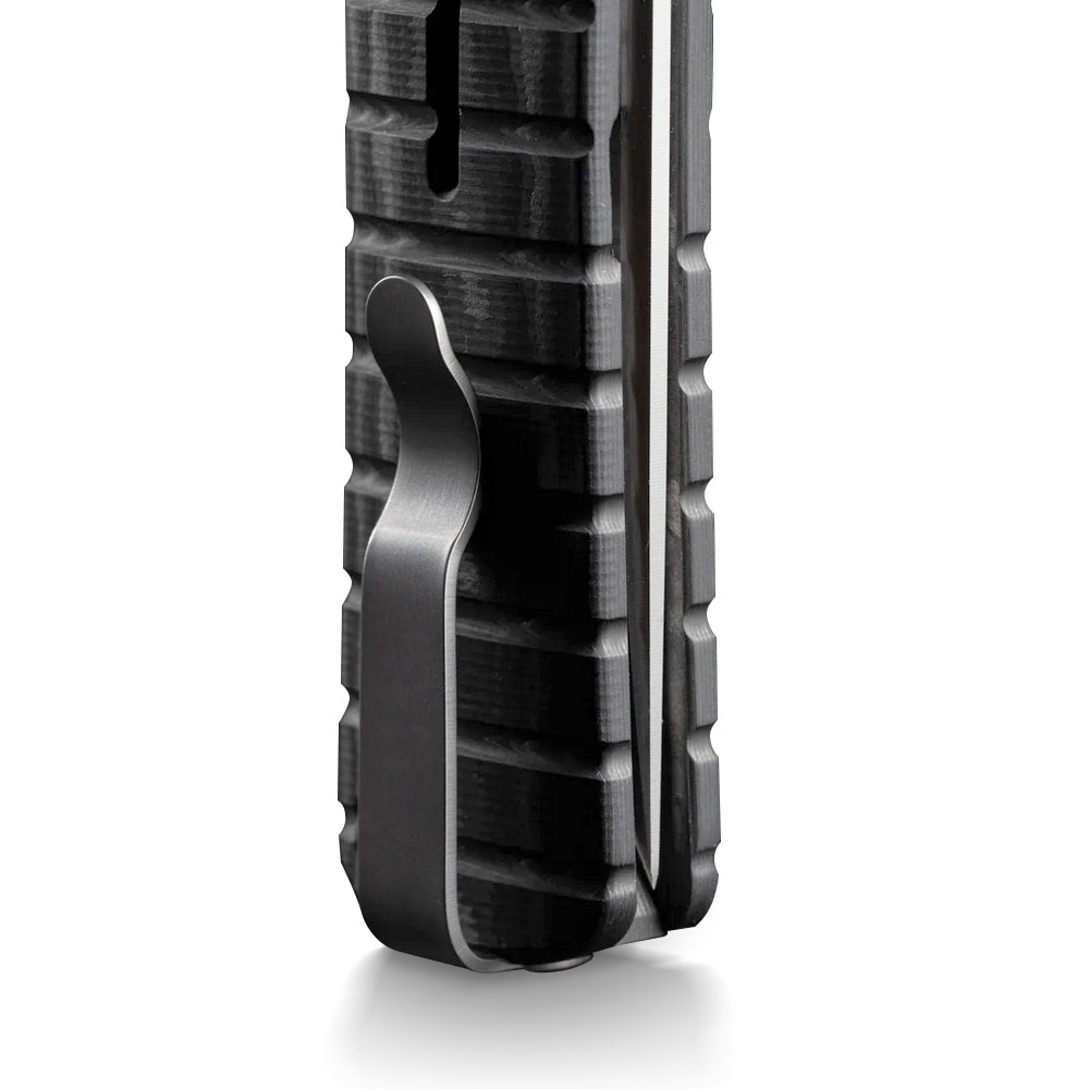 Nóż wyposażono w nierdzewny stalowy klips, umożliwiający stabilne przenoszenie w kieszeni, zamocowanie w plecaku, organizerze, nerce itd. Jest to klips zaprojektowany w stylu deep carry umożliwiający dyskretne przenoszenie noża w kieszeni. Na zakończeniu rękojeści zaprojektowany został otwór pozwalający na przewleczenie linki, paracordu itp. Zarówno klips jak i otwór to elementy służące jako zabezpieczenie przed ewentualnym zgubieniem noża. Otwór można wykorzystać również do podpięcia dodatkowej ozdoby w postaci koralika itd.