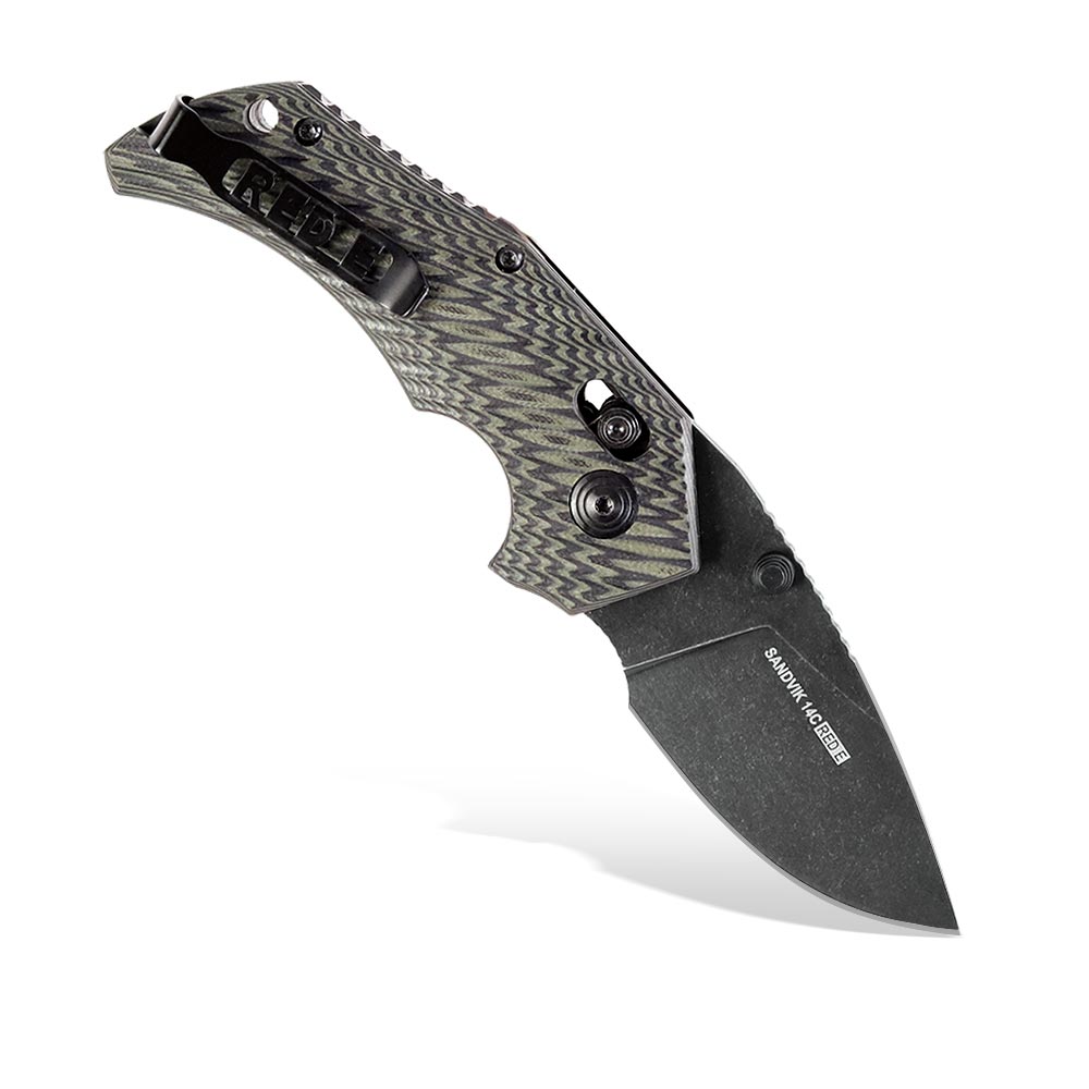 Red E posiada głownię drop point ze szlifem płaskim i wykończeniem w stylu dark stonewash. Ostrze wykonano ze szwedzkiej stali nierdzewnej Sandvik 14C. Jest to stal stworzona specjalnie na ostrza noży, charakteryzująca się dużą odpornością na korozję, łatwością w ostrzeniu i relatywnie wysoką twardością.