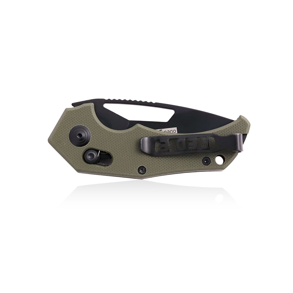 Otwieranie noża odbywa się za sprawą otworu w głowni. Opcjonalnie nóż otwieramy za pomocą zwolnienia blokady. Rozkładanie noża następuje bardzo swobodnie i płynnie dzięki wyposażeniu go w łożyska kulkowe. Nóż posiada samoczynnie ustawiającą się podczas jego otwierania stabilną i wytrzymałą blokadę chroniącą przed niekontrolowanym zamknięciem podczas używania (axis lock). Na grzbiecie ostrza znajduje się karbowanie (jimping) pełniące rolę podpory na kciuk przy cięciach wymagających docisku a w jego dolnej części rowek na palec wskazujący, który pomoże skrócić chwyt.