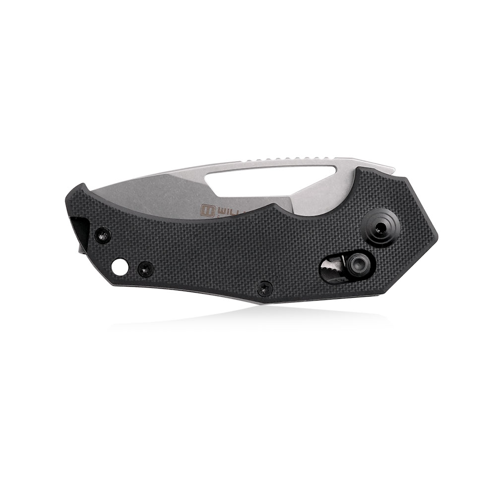 Otwieranie noża odbywa się za sprawą otworu w głowni. Opcjonalnie nóż otwieramy za pomocą zwolnienia blokady. Rozkładanie noża następuje bardzo swobodnie i płynnie dzięki wyposażeniu go w łożyska kulkowe. Nóż posiada samoczynnie ustawiającą się podczas jego otwierania stabilną i wytrzymałą blokadę chroniącą przed niekontrolowanym zamknięciem podczas używania (axis lock). Na grzbiecie ostrza znajduje się karbowanie (jimping) pełniące rolę podpory na kciuk przy cięciach wymagających docisku a w jego dolnej części rowek na palec wskazujący, który pomoże skrócić chwyt.