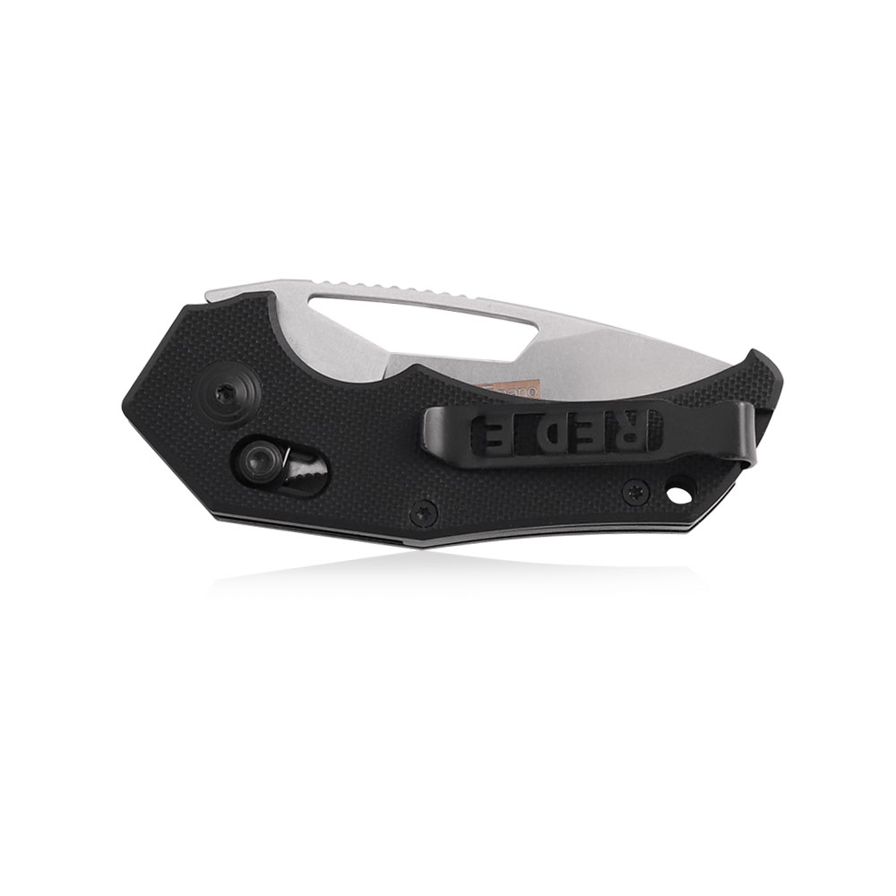Klips stalowy zapewnia stabilne przenoszenie noża w kieszeni, zamocowanie w plecaku, sakwie, nerce itd., czym przyczynia się do minimalizacji ryzyka zgubienia narzędzia. Klips zaprojektowany został w stylu deep carry, co pozwala na dyskretne przenoszenie noża w kieszeni. Może on być przekładany na drugą stronę dla osób leworęcznych w pozycji czubkiem do góry (TIP UP). W opakowaniu z nożem, producent załączył drugi klips gładki bez nazwy modelu oraz narzędzie do jego wymiany wraz ze śrubką.