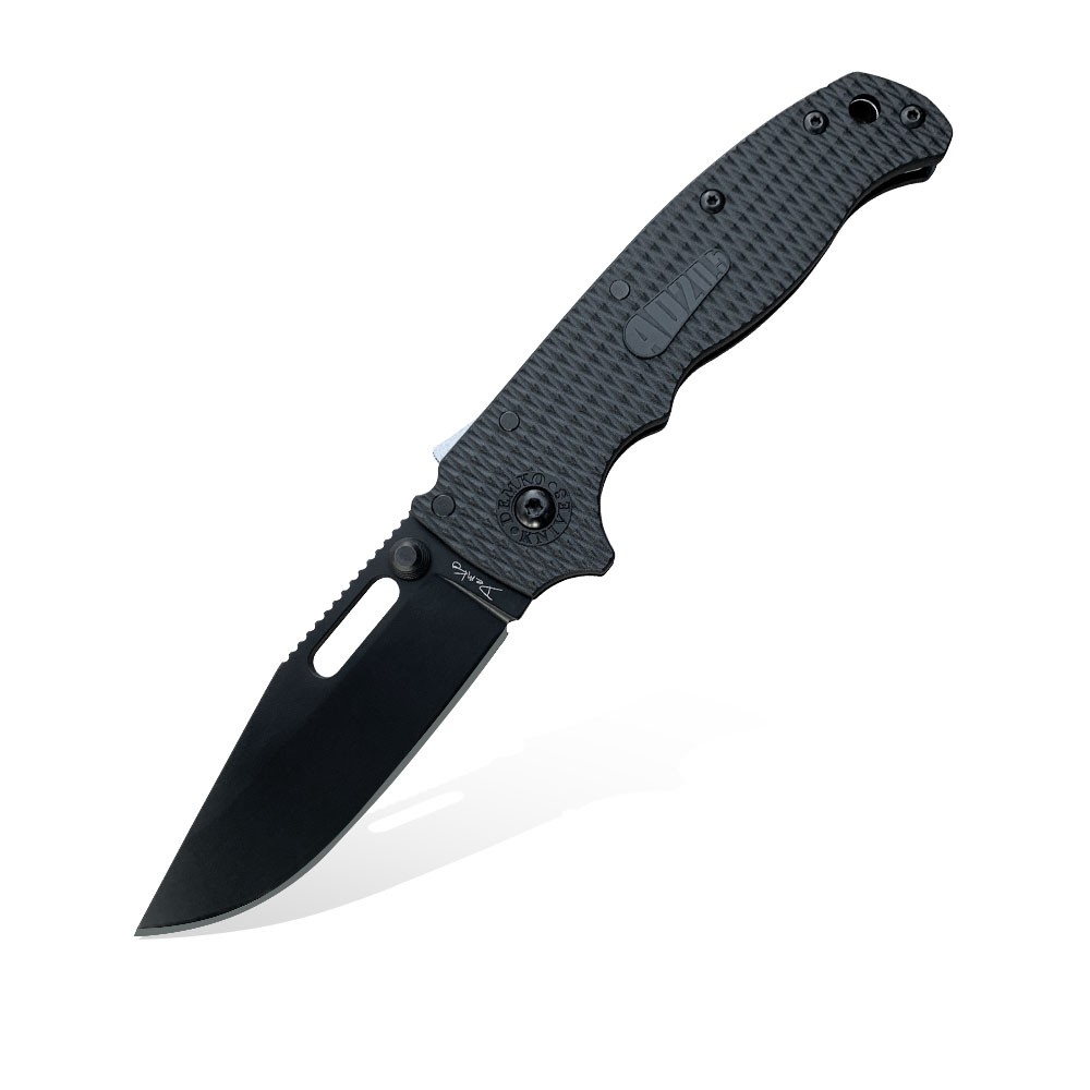 Otwieranie noża odbywa się za sprawą obustronnych kołków. Opcjonalnie nóż otwieramy za pomocą zwolnienia blokady. Rozkładanie noża następuje bardzo swobodnie i płynnie. Nóż posiada samoczynnie ustawiającą się podczas jego otwierania stabilną i wytrzymałą blokadę chroniącą przed niekontrolowanym zamknięciem podczas używania (axis lock). Na grzbiecie ostrza znajduje się karbowanie (jimping) pełniące rolę podpory na kciuk przy cięciach wymagających docisku.
