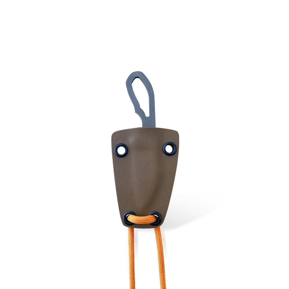 Nóż Sliwkosky Knives Bug | Neck D2 Coyote Kydex posiada wykończone w stylu acid stonewash ostrze ze stali D2, budowę szkieletową oraz kaburę kydex w kolorze czarnym z podpiętym paracordem, służącym do przenoszenia na szyi. Kolor paracordu jest wysyłany losowo.