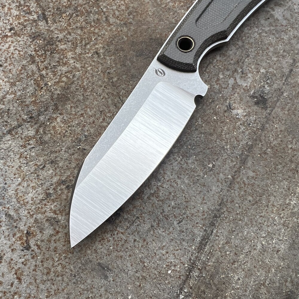 Ostrze z grzbietem o grubości 3,1 mm (0.12″) wykonane w stylistyce sheepsfoot z dużym wybrzuszeniem i szlifem wklęsłym posiada świetne właściwości tnące i można je użytkować bardzo uniwersalnie. Przygotowywanie żywności, prace codzienne takie jak otwieranie paczek, przecinanie linki i inne tego typu zadania to naturalna sfera działania tego ostrza.