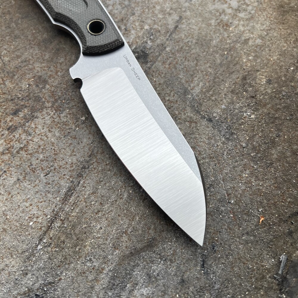Nóż Sliwkosky Knives Urban Sheep „Sage” to poręczne ostrze o użytkowo-miejskim sznycie. Poza zauważalną symetrią projektu, odbiciem wierzchołka ostrza w zakończeniu rękojeści, nóż wyróżniają: kompaktowy rozmiar, świetna ergonomia chwytu i ostrze o świetnych właściwościach tnących. Urban Sheep wyróżnia przede wszystkim głownia o profilu sheepsfoot, ale wyprofilowana z wybrzuszoną krawędzią tnącą, w taki sposób że można jej używać prawie tak jak uniwersalnego drop point’a. W dodatku szlif wklęsły uwydatnia świetne właściwości tnące, szczególnie przy przygotowywaniu żywności, a wierzchołek krawędzi tnącej pomaga przy cięciach wymagających docisku.