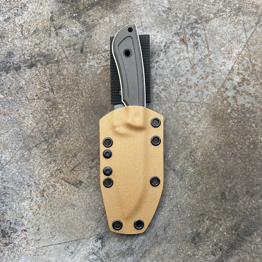 Do przenoszenia i przechowywania noża służy kabura uformowana z tworzywa Kydex posiadająca uchwyt ze szlufką z nylonu, dającą elastyczność podczas przykucnięć i innych ruchów użytkownika. W kaburze znajdują się otwory, które można wykorzystać do zaplecenia paracordu lub podpięcie indywidualnego rodzaju ocowania.