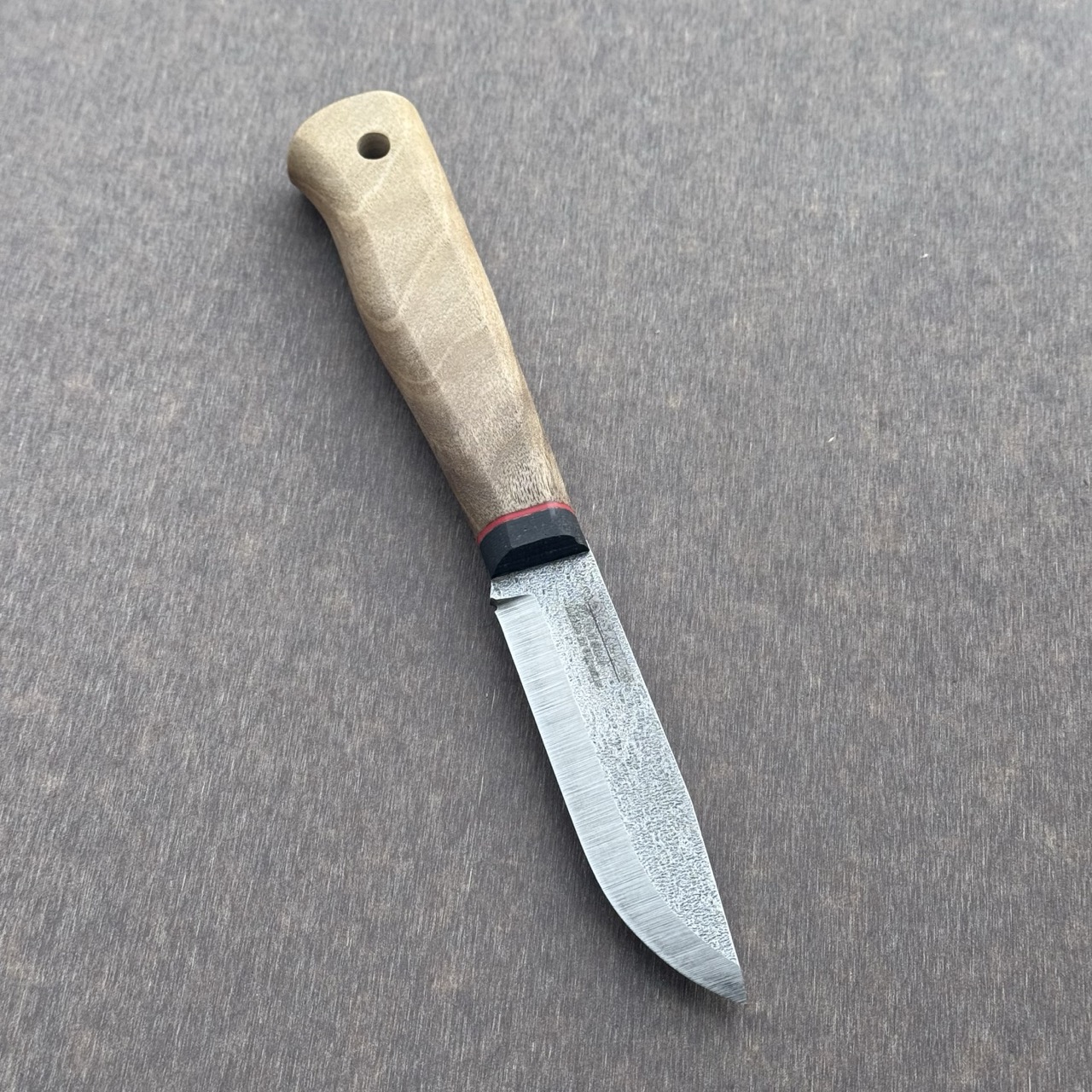 SZLIF SKANDYNAWSKI (SCANDI GRIND): Zastosowany szlif skandynawski charakteryzuje się prostą geometrią bez fazy wtórnej, co zapewnia bardzo dobrą kontrolę cięcia oraz wysoką efektywność pracy w drewnie i materiałach naturalnych. Tego typu szlif ułatwia prowadzenie ostrza w materiale, pozwala na precyzyjne struganie oraz jest łatwy do ostrzenia w warunkach terenowych.