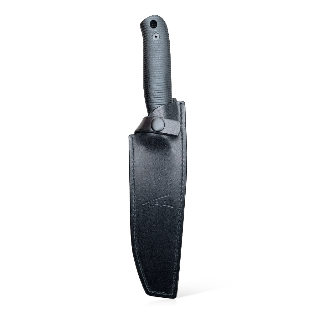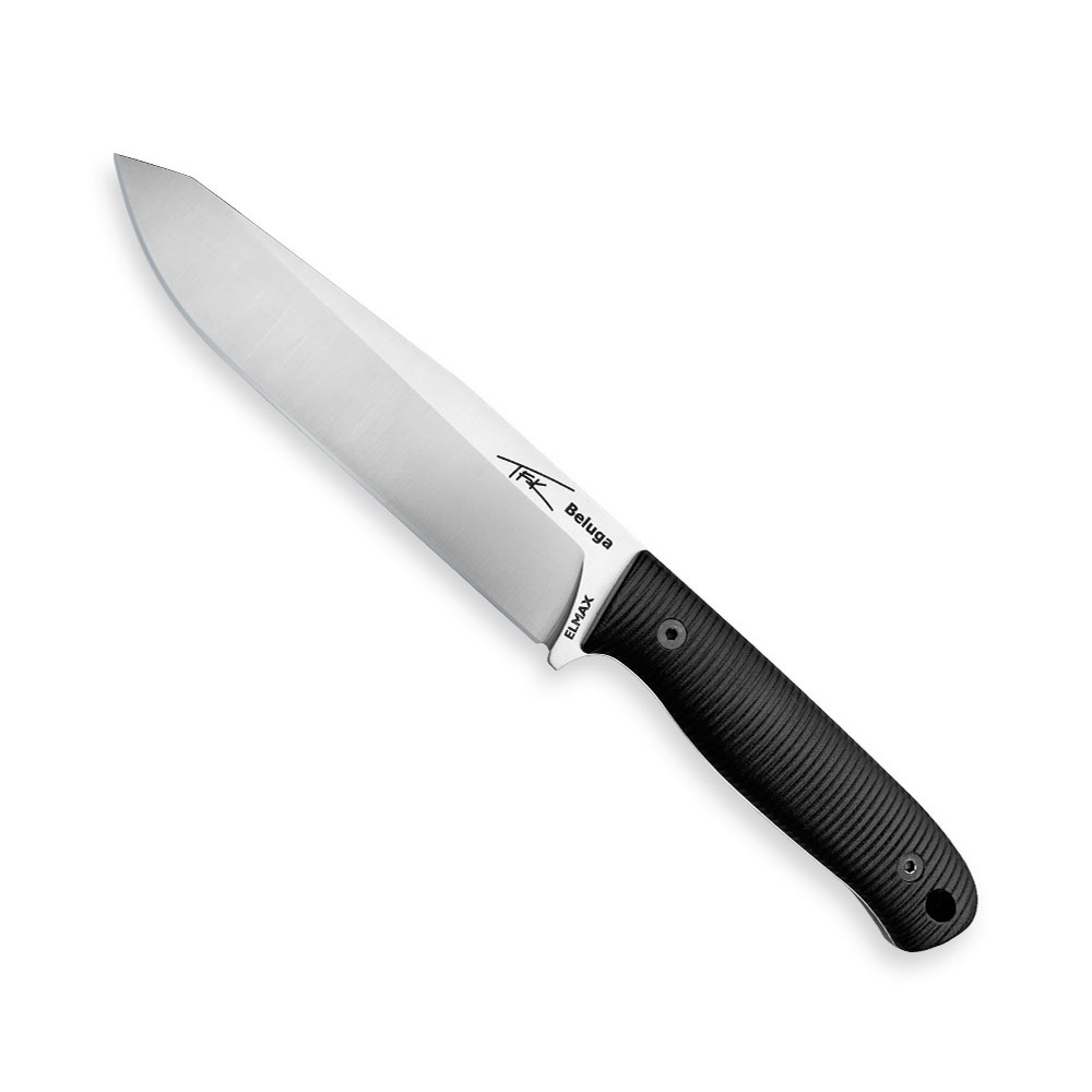 Prezentowany nóż TFK – Tanev Family Knives Beluga | Elmax| Black G10 wykonany został z europejskiej stali premium Elmax. Stal posiada satynowane wykończenie. Nóż posiada okładziny rękojeści z czarnego kompozytu G10 a do jego przenoszenia służy czarna skórzana pochwa.