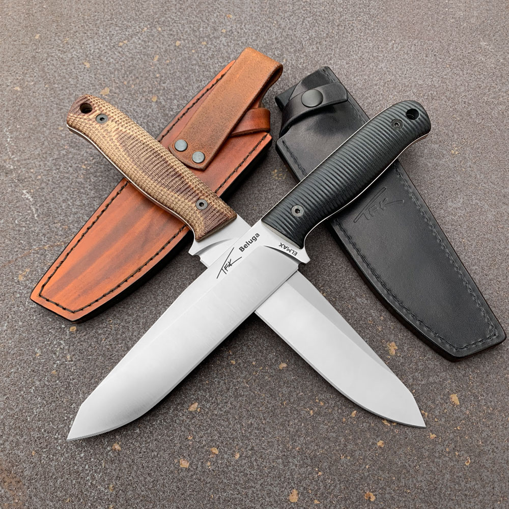 Prezentowany nóż Beluga wykonany został ze stali Elmax. Elmax to jedna z kilku stali dostępnych na rynku znajdujących się w absolutnym topie jakościowym materiałów służących do produkcji noży premium. Noże z niej zrobione są ekstremalnie wytrzymałe na przeciążenia, niezwykle długo pozostają ostre i mają doskonałe właściwości antykorozyjne.