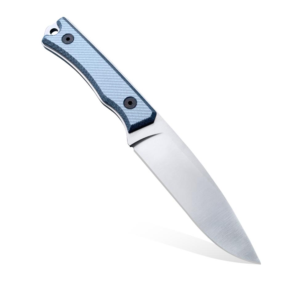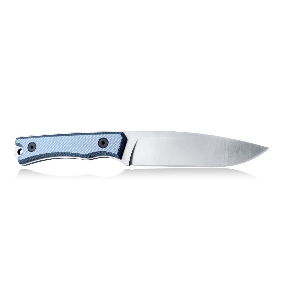 Ostrze wykonane w stylu drop point, posiadające szlif płaski, zapewnia płynne cięcie i wykonywanie różnorodnych zadań (przekłuwanie, struganie, przygotowywanie posiłków itd.). Do dyspozycji mamy 110 mm ostrze, którego grzbiet celowo wykończony na ostro pozwala na sprawną pracę z krzesiwem. Ostrość grzbietu jest na tyle duża że łatwo się nią krzesa, a jednocześnie na tyle stonowana (fazowana), aby się nie nie kaleczyć.