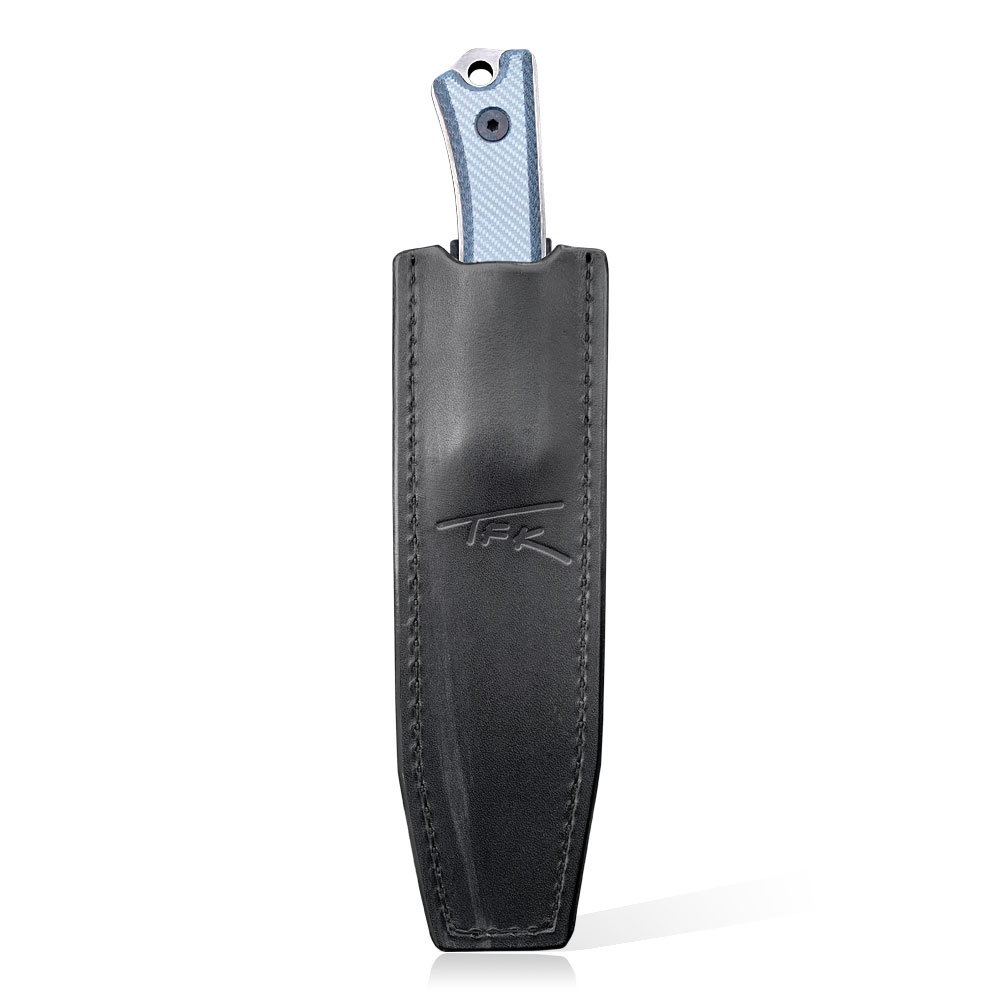 Prezentowany nóż TFK – Tanev Family Knives T11 Alutex G10 Blue | Elmax wykonany został ze świetnej stali Elmax, której nadano satynowane wykończenie. Okładki rękojeści wykonano z kompozytu Alutex G10 w niebieskim odcieniu (Blue). W zestawie z nożem dostarczana jest skórzana pochwa o czarnej barwie.
