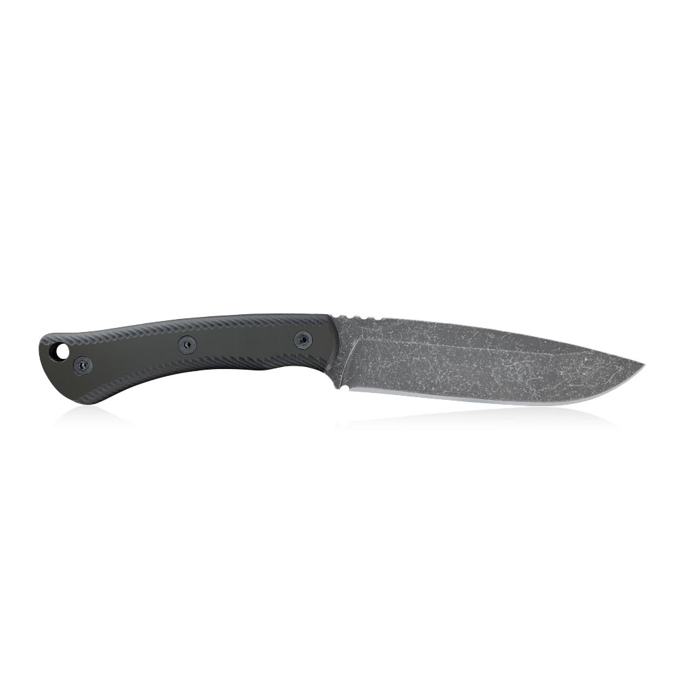 Ostrze z grzbietem o grubości 4,4 mm wykonane w stylu drop point, posiadające szlif płaski, zapewnia płynne cięcie i wykonywanie różnorodnych zadań (przekłuwanie, struganie, batonowanie, karczowanie, przygotowywanie posiłków itd.). Do dyspozycji mamy 135 mm ostrze, którego grzbiet celowo wykończony na ostro pozwala na sprawną pracę z krzesiwem.