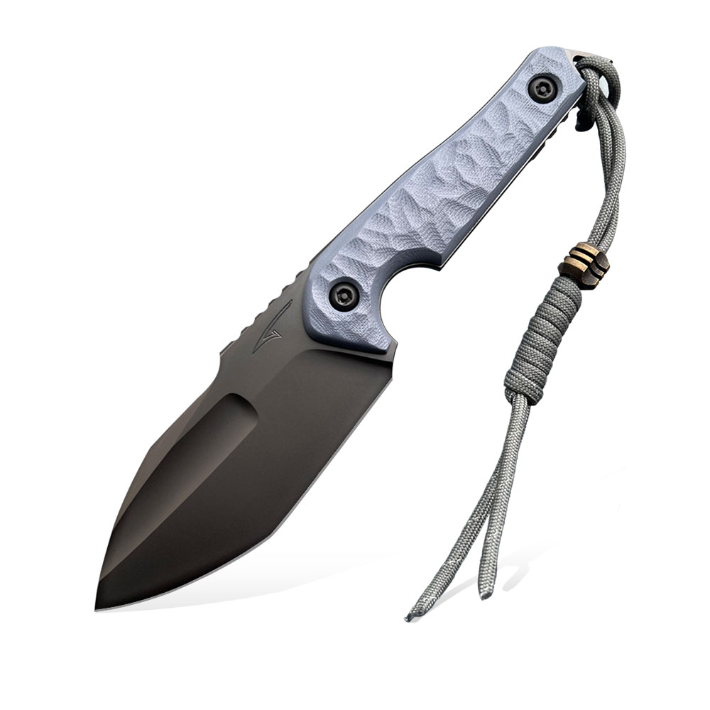 Okładki rękojeści wykonane zostały z kompozytu G10 odpornego na wilgoć, zmiany temperatury, większość rozpuszczalników i kwasów, posiadającego wysoką odporność na uszkodzenia mechaniczne. Okładki zostały przykręcone śrubami w powłoce DLC dla spójności z ogólnym designem noża. Całość konstrukcji sprawia, że rękojeść bardzo dobrze dopasowuje się do dłoni a chwyt jest mocny i pewny.