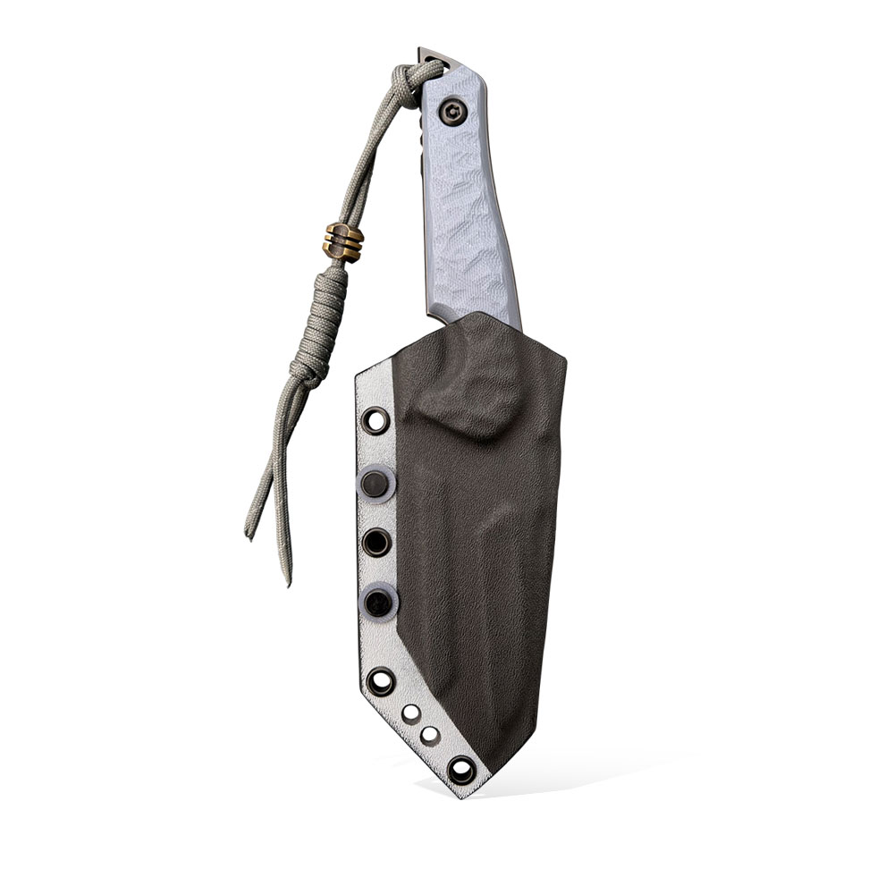 - Pokrowiec: czarna pochwa Kydex z białym paskiem z klamrą T-Clip