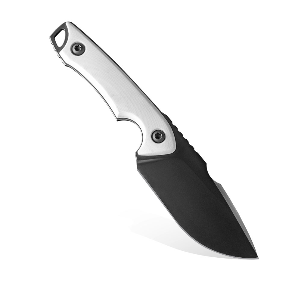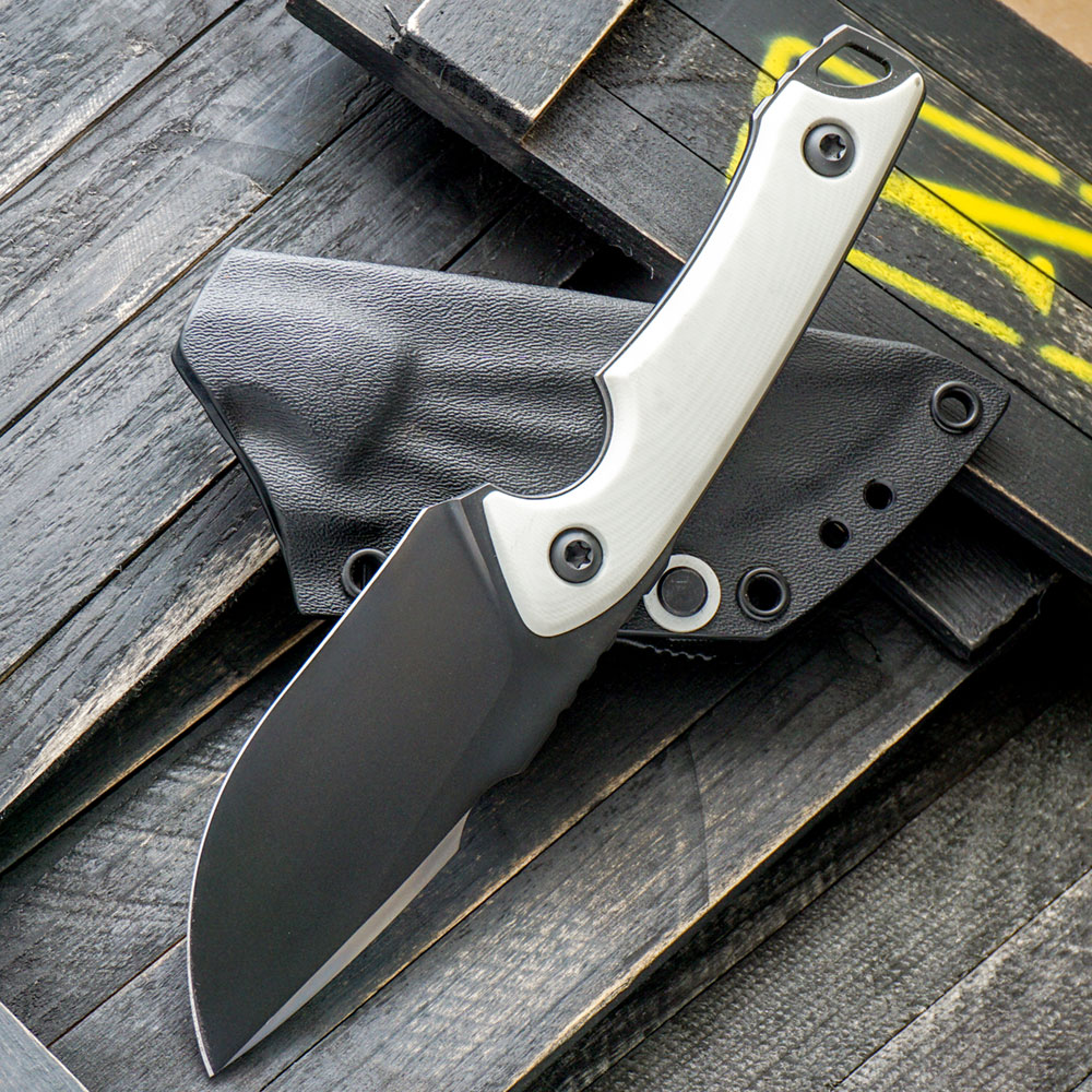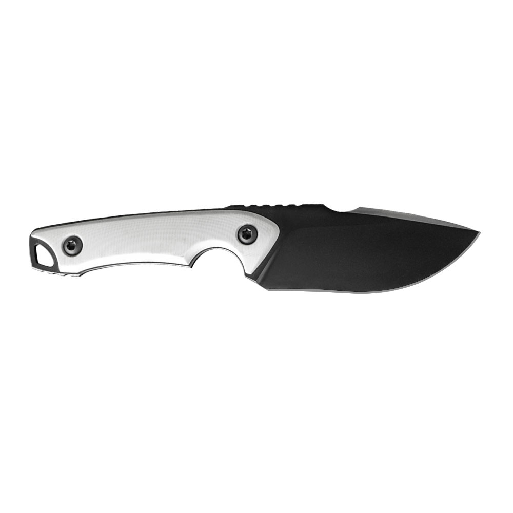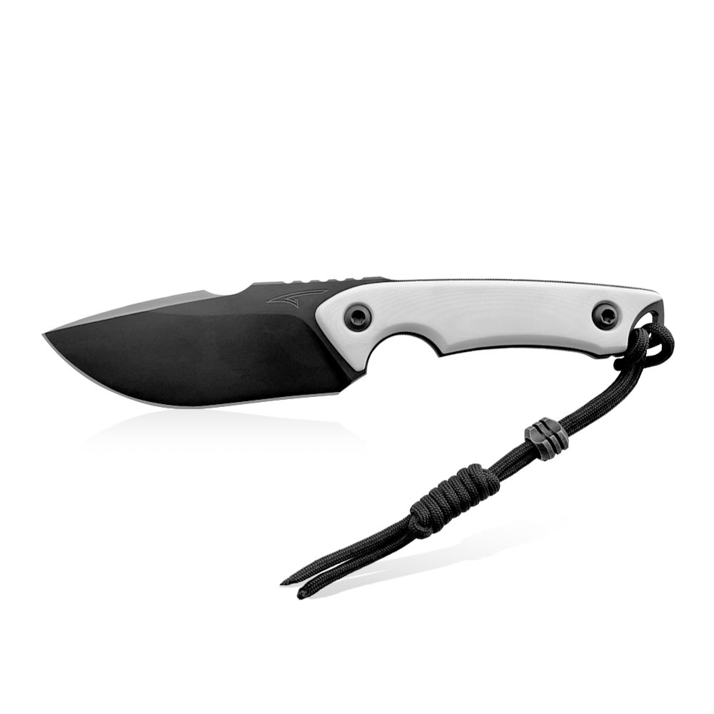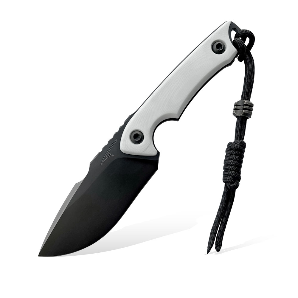 Nóż Torbé Knives Lontra Tiny Tot Pearl Tone posiada wydajne ostrze ze znanej z wytrzymałości na przeciążenia stali Sleipner, pokrytej czarną powłoką DLC (o twardości zbliżonej do aż 90 HRC). Okładziny rękojeści to gładki biały kompozyt G10. W zestawie znajduje się czarna kabura Kydex. Nóż dostarczany jest z niepowtarzalnym mosiężnym koralikiem wykonanym w stylu vintage (koralik custom).