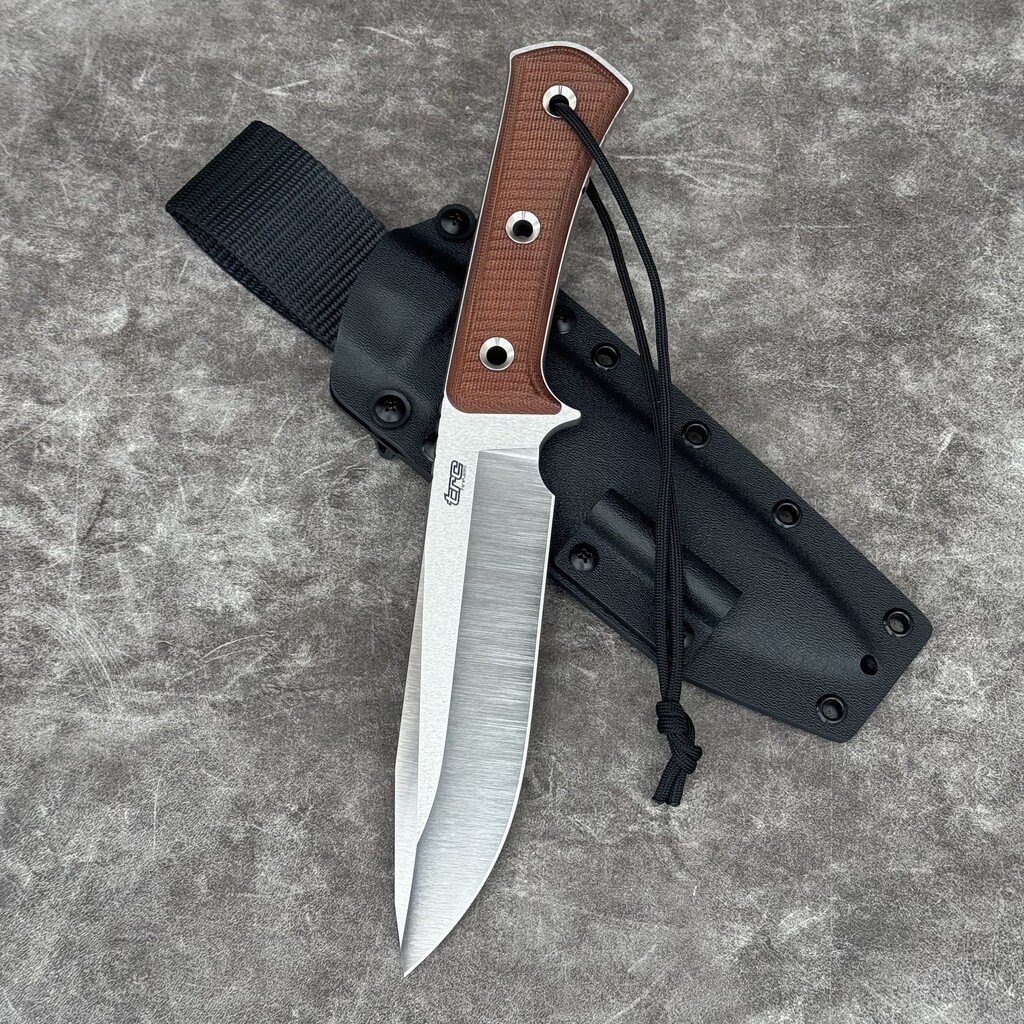 **MATERIAŁ RĘKOJEŚCI**: Okładziny rękojeści o zowalizowanym kształcie wykonane zostały z oryginalnej Micarty, materiału odpornego na wilgoć, zmiany temperatury, większość rozpuszczalników i kwasów, posiadającego wysoką odporność na uszkodzenia mechaniczne. Micarta znana ze swoich doskonałych właściwości, również wizualnych (daje się stylizować na naturalny materiał) ma antypoślizgową, chropowatą strukturę.