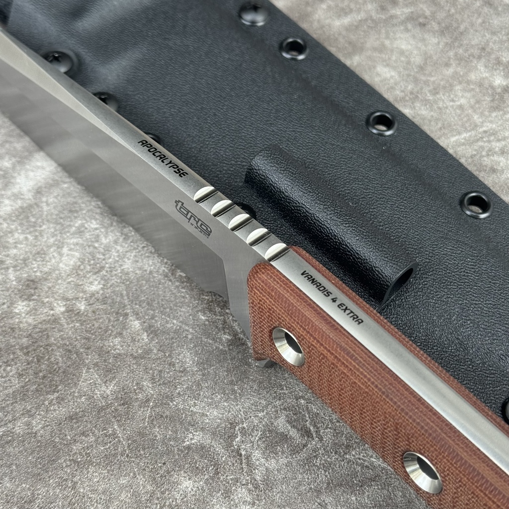 Apocalypse to z jednej strony nóż wykonany na potrzeby ekstremalnego survivalu, kiedy znajdujemy się w sytuacji być albo nie być. Z drugiej strony to uniwersalny wybór na potrzeby codziennych prac bushcraftowych, gdzie oprócz standardowej funkcji narzędzia tnącego, krojącego itd., przez wzgląd na jego bardzo duże gabaryty, może on skutecznie zastąpić siekierę (batonowanie drewna), lub maczetę (oczyszczanie terenu pod obóz, drogi itd.).
