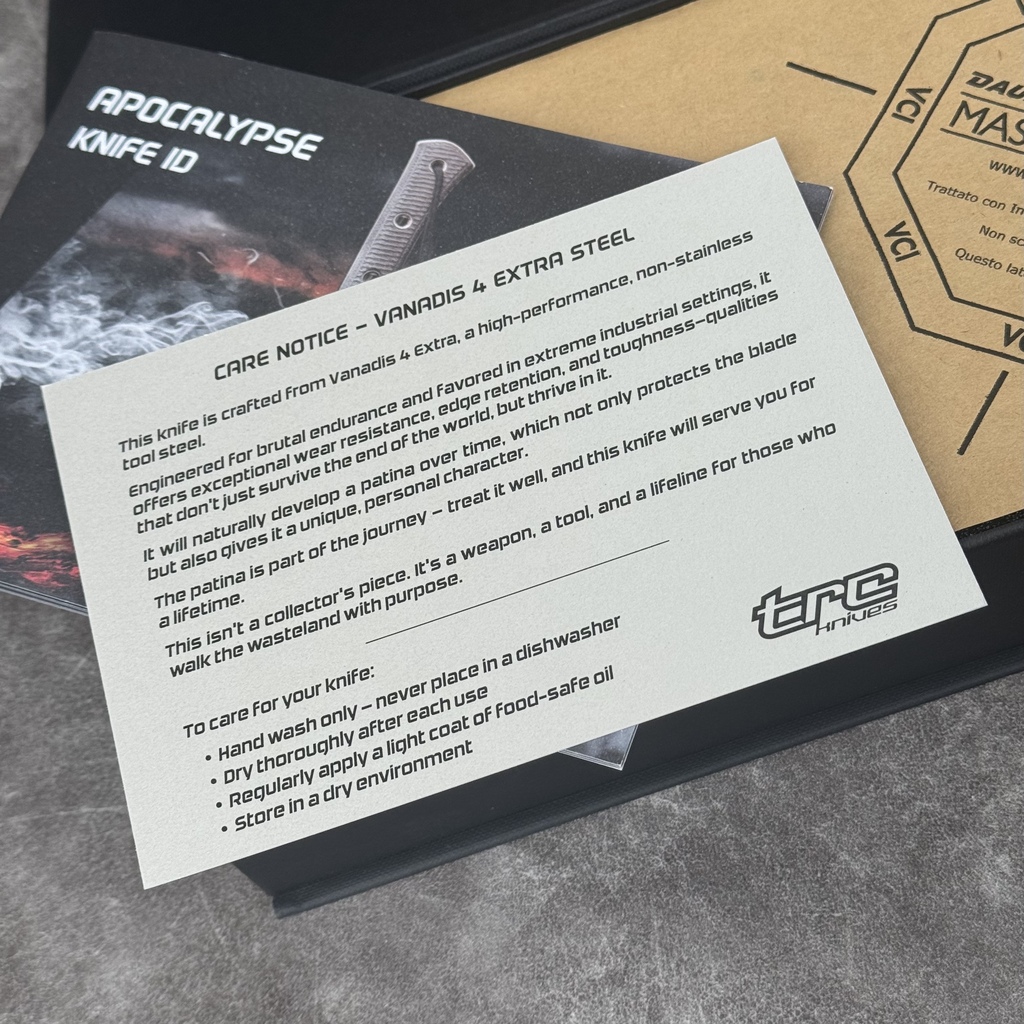 - Certyfikat autentyczności (Knife ID book)