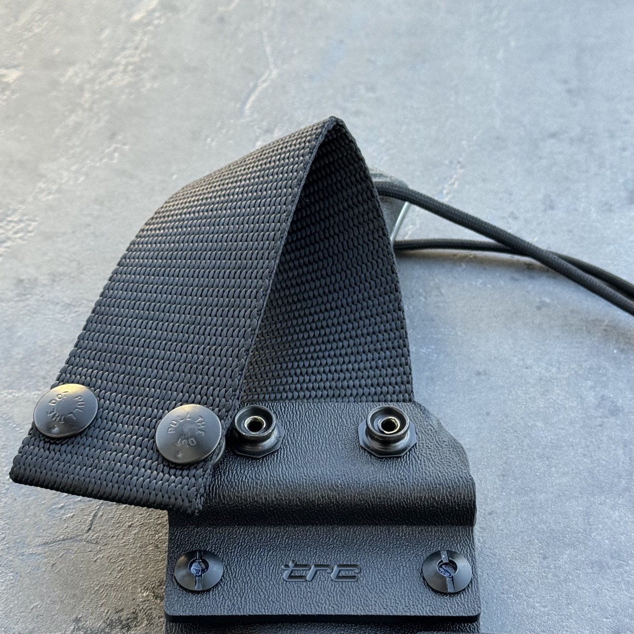 - Pochwa: czarna kabura Kydex (black Kydex)