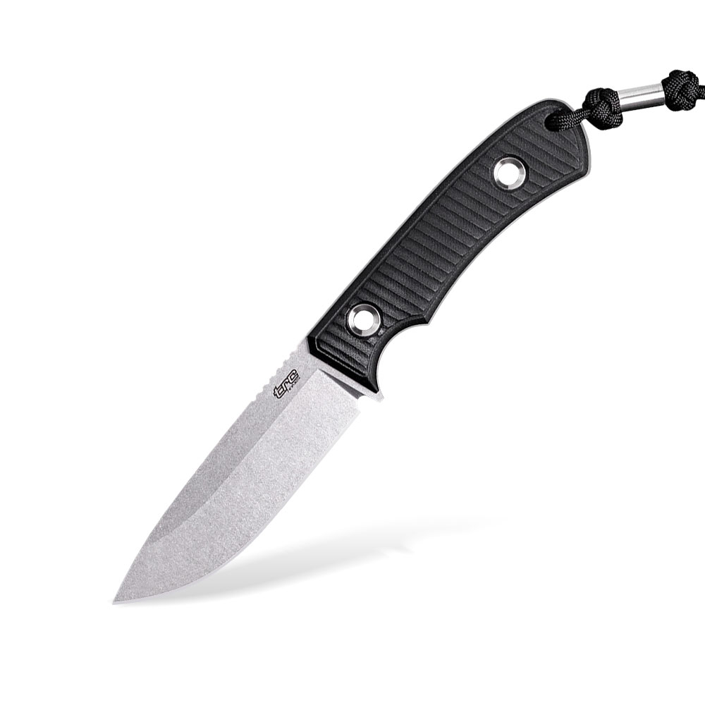 Ostrze o grzbiecie grubości 3,5 mm (0.12″) wykonane w stylu drop point sprawdzi się we wszelkiego rodzaju zastosowaniach outdoorowych. Prace w drewnie czy przygotowywanie posiłku to jego naturalne zastosowania. Ostrze wyprowadzone szlifem płaskim wysokim, wspomaga proces płynnego cięcia i wykonywanie różnorodnych zadań. Na głowni znajdziemy karbowanie (jimping), które stanowi podporę na kciuk podczas cięć wymagających docisku. Nóż posiada wyprofilowany jelec, który wraz z podcięciem na palec w rękojeści zabezpiecza przed zsunięciem się dłoni na krawędź tnącą podczas pracy. Zaokrąglony grzbiet wystający z rękojeści poprawia komfort i pewność chwytu.