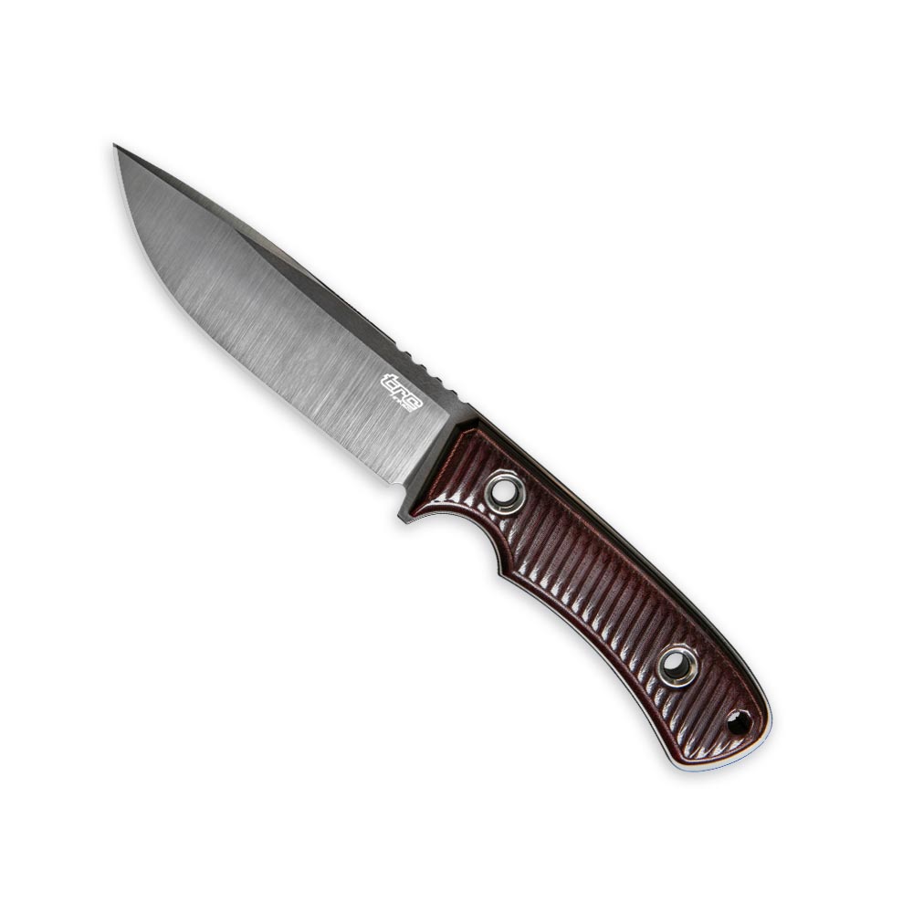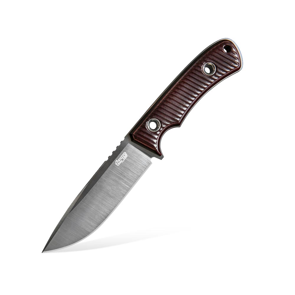 Ostrze o grzbiecie grubości 4,5 mm wykonane w stylu drop point sprawdzi się we wszelkiego rodzaju zastosowaniach survivalowych i na kempingu. Zarówno batonowanie drewna jak i przygotowywanie posiłku nie będzie stanowiło dla niego kłopotu. Pomoże w tym dodatkowo jego wykończenie szlifem płaskim, który zapewni płynne cięcie i wykonywanie różnorodnych zadań. Na głowni znajdziemy karbowanie (jimping), które stanowi podporę na kciuk podczas cięć wymagających użycia większej siły. Nóż posiada wyprofilowany jelec, który wraz z podcięciem na palec w rękojeści zabezpiecza przed zsunięciem się dłoni na krawędź tnącą podczas pracy. Zaokrąglony grzbiet wystający z rękojeści poprawia komfort i pewność chwytu. Grzbiet jest minimalnie wypuszczony po za obrys z każdej strony rękojeści, a na linii głowicy (tylna część noża) jest go trochę więcej, co może służyć jako improwizować zgniatak, młotek, czy wybijak.