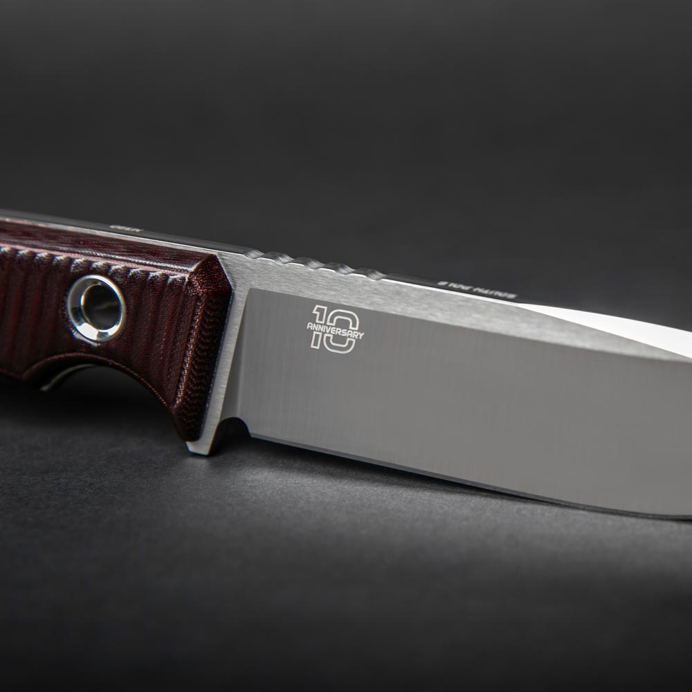Nóż TRC Knives South Pole 10th Anniversary Edition posiada ostrze z satynowanej stali premium M390, charakterystycznie ścięte przy wierzchołku („swedge”), rękojeść z ekskluzywnej polerowanej micarty (Maroon Micarta®) oraz skórzaną pochwę o odcieniu złotawo-brązowym. Ostrze posiada grawerowanie z oznaczeniem „10 Anniversary”. Edycja zaplanowana jest na limitowaną ilość 300 egzemplarzy.