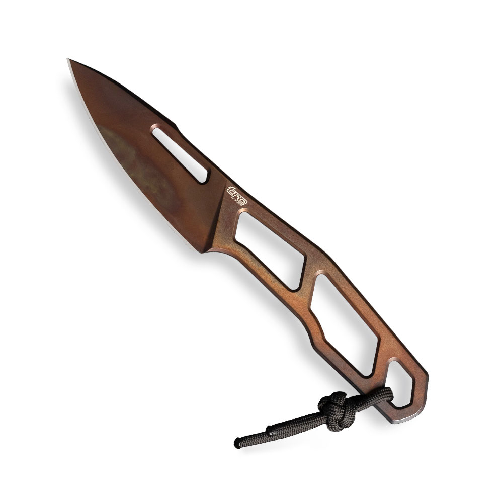 Ergonomiczna rękojeść o innowacyjnej szkieletowej budowie pewnie leży w dłoni. Wszystkie umiejscowione na niej krawędzie zostały precyzyjnie oszlifowane aby chwyt był w pełni komfortowy. Otwory w korpusie szkieletowym, poza wrażeniami estetycznymi przydają się również na przełożenie palców dla jeszcze lepszego i mocniejszego chwytu lub na doczepienie dodatkowej linki, paracordu itd.