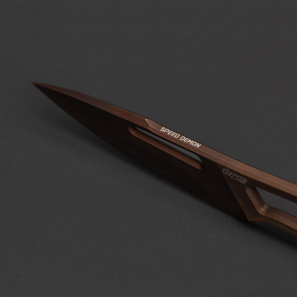 Nóż TRC Knives Speed Demon Biohazard 2022 to limitowana wersja noża Speed Demon należącego do serii “Tales of Man” inspirowanej znanymi postaciami minionych lat, mocno wyróżniającymi się z różnych względów na tle epok, w których żyli. Impulsem do powstania Speed Demon’a stała się postać kultowego amerykańskiego kierowcy wyścigowego Franka Lockharta.