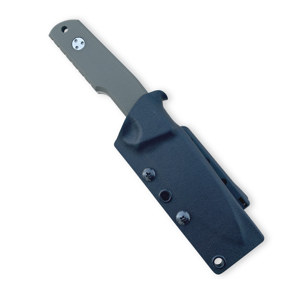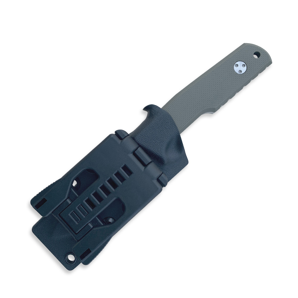 W zestawie z nożem otrzymujemy kaburę z ręcznie formowanego tworzywa Kydex w kolorze czarnym, którą przytwierdzamy do paska za pomocą klamry Tek-lok dostosowanej do rozwiązań typu MOLLE. Dla ułatwienia w wyjmowaniu noża, który bardzo dobrze opina ciasno dopasowane tworzywo zaplanowano podporę na kciuk, dzięki której nóż możemy wyjąć w sposób kontrolowany i bezpieczny. Sam Kydex cechuje się wysoką odpornością na uderzenia, zarysowania, charakteryzuje się niską chłonnością wilgoci, odpornością na różnorodne warunki atmosferyczne oraz wiele środków chemicznych. Kabury z niego wykonane użytkujemy wygodnie i długotrwale.NAZWA: Urban Tactical