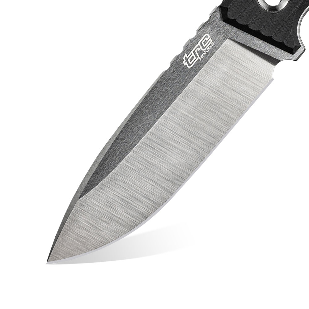 **UNIWERSALNE OSTRZE**: Ostrze w stylu drop point wykończone szlifem płaskim wysokim ma uniwersalne zastosowanie. Rękojeść bardzo dobrze dopasowuje się i pewnie leży w dłoni a jej wyprofilowanie (podcięcie na palce) w połączeniu z niedużym jelcem pomaga uniknąć zsunięcia się dłoni na krawędź tnącą. Zaokrąglony wystający z każdej strony rękojeści grzbiet sprawia, że lepiej czujemy nóż w dłoni, co wpływa na bezpieczeństwo w operowaniu narzędziem. Na grzbiecie znajdziemy karbowanie (jimping) na podparcie kciuka podczas cięć wymagających docisku.