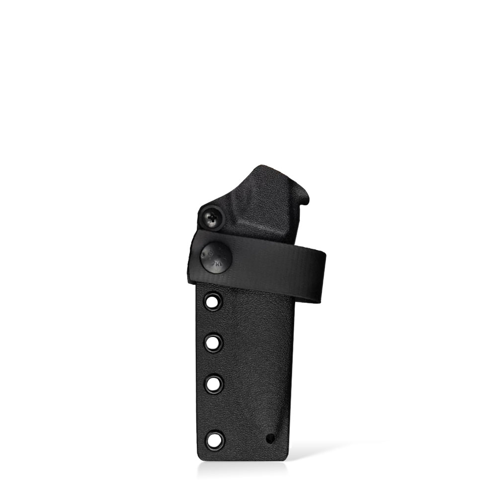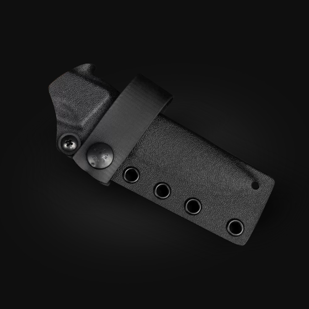 Sam Kydex jest materiałem bardzo wytrzymałym, cechuje się wysoką odpornością na uderzenia, zarysowania, charakteryzuje się niską chłonnością wilgoci, odpornością na różnorodne warunki atmosferyczne oraz wiele środków chemicznych. Kabury z niego wykonane użytkujemy wygodnie i długotrwale. Kabura zaopatrzona została w piny przelotowe, do których można przypiąć np. uchwyt na krzesiwo (nie znajduje się w zestawie) lub użyć ich do jej zamocowania na plecaku, elemencie uprzęży czy rozwiązaniu typu molle.