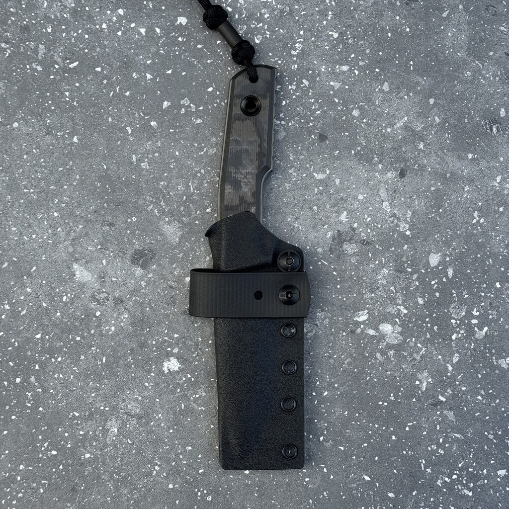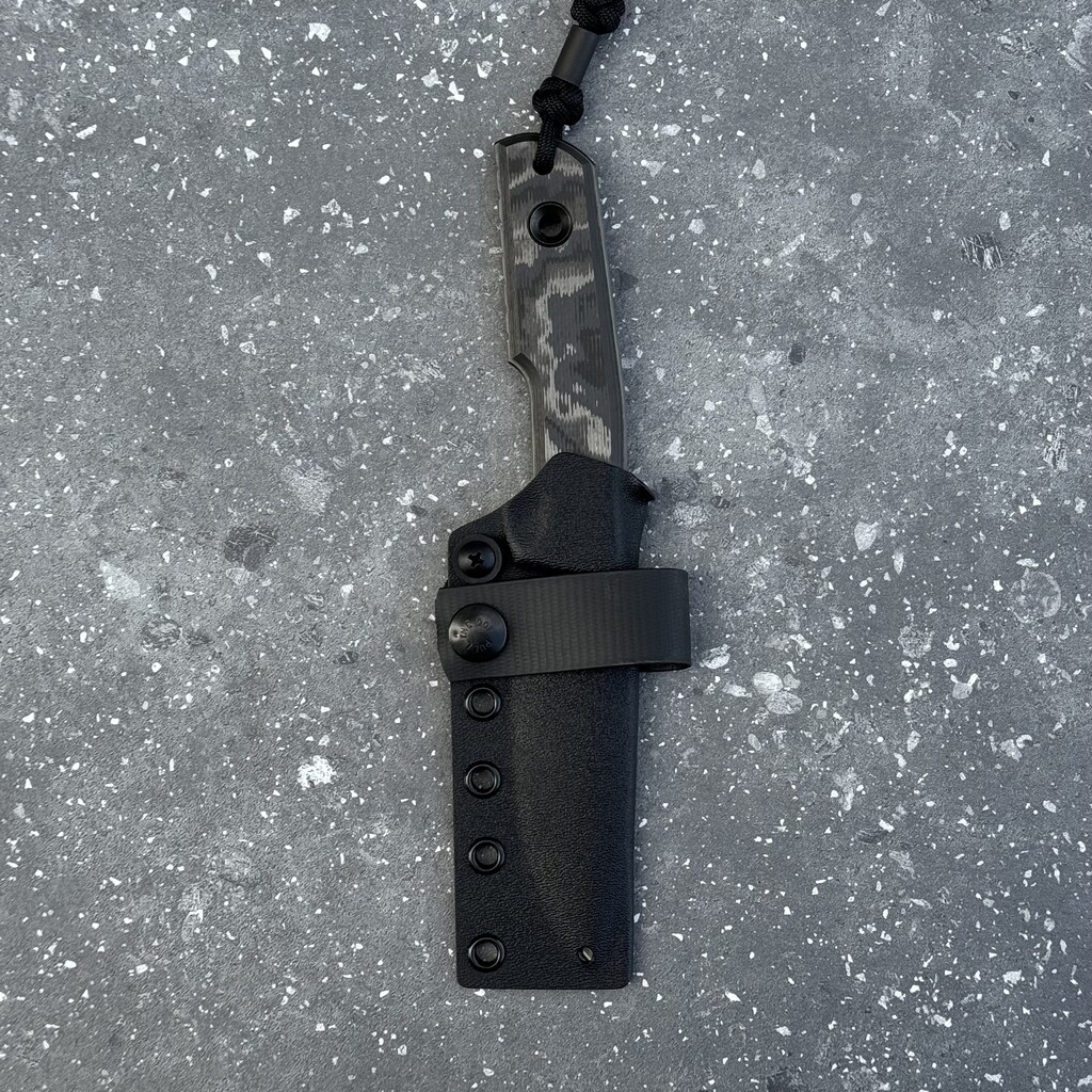 - Pokrowiec: Czarna pochwa Kydex ze szlufką na pasek z zatrzaskiem Pull-The-Dot