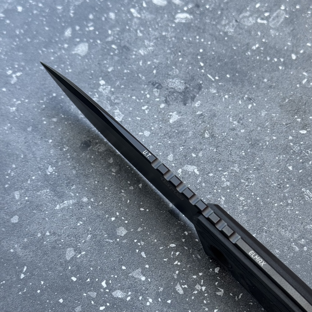- Stal: Elmax (60-61 HRC), czarna powłoka DLC