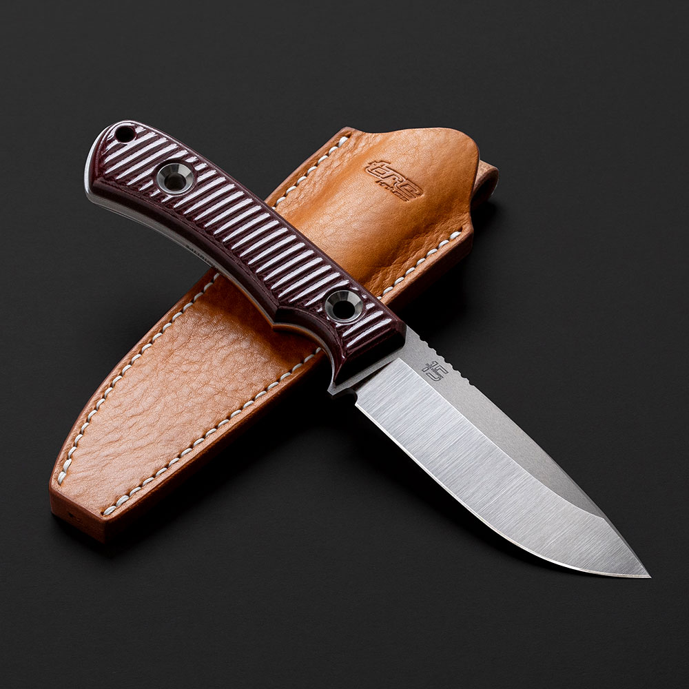 Nóż TRC Knives Polheim 15th Anniversary | Satin RWL-34 Maroon Micarta Brown Leather | Edycja Rocznicowa