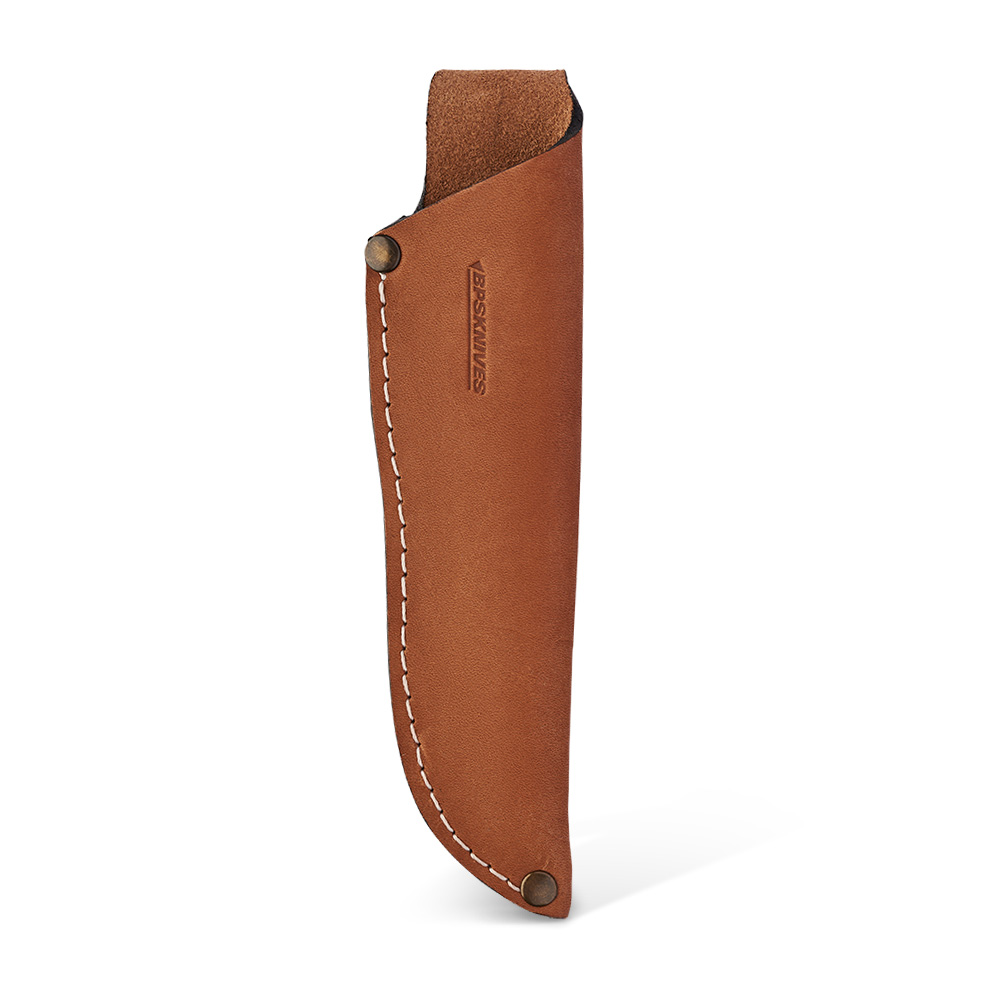 W zestawie z nożem otrzymujemy kaburę wykonaną ze skóry. Jest to klasyczne rozwiązanie pasujące stylem do narzędzia w niej się znajdującego. Drewno i skóra od zawsze stanowią idealne połączenie. Jasne przeszycia na skórze nadają jej bardzo oryginalnego wyglądu. Pochwa noża ma wysoki profil i chowa w sobie część rękojeści by lepiej zabezpieczać nóż przed wypadnięciem. Mocowana jest tradycyjnie do pasa w pozycji pionowej.