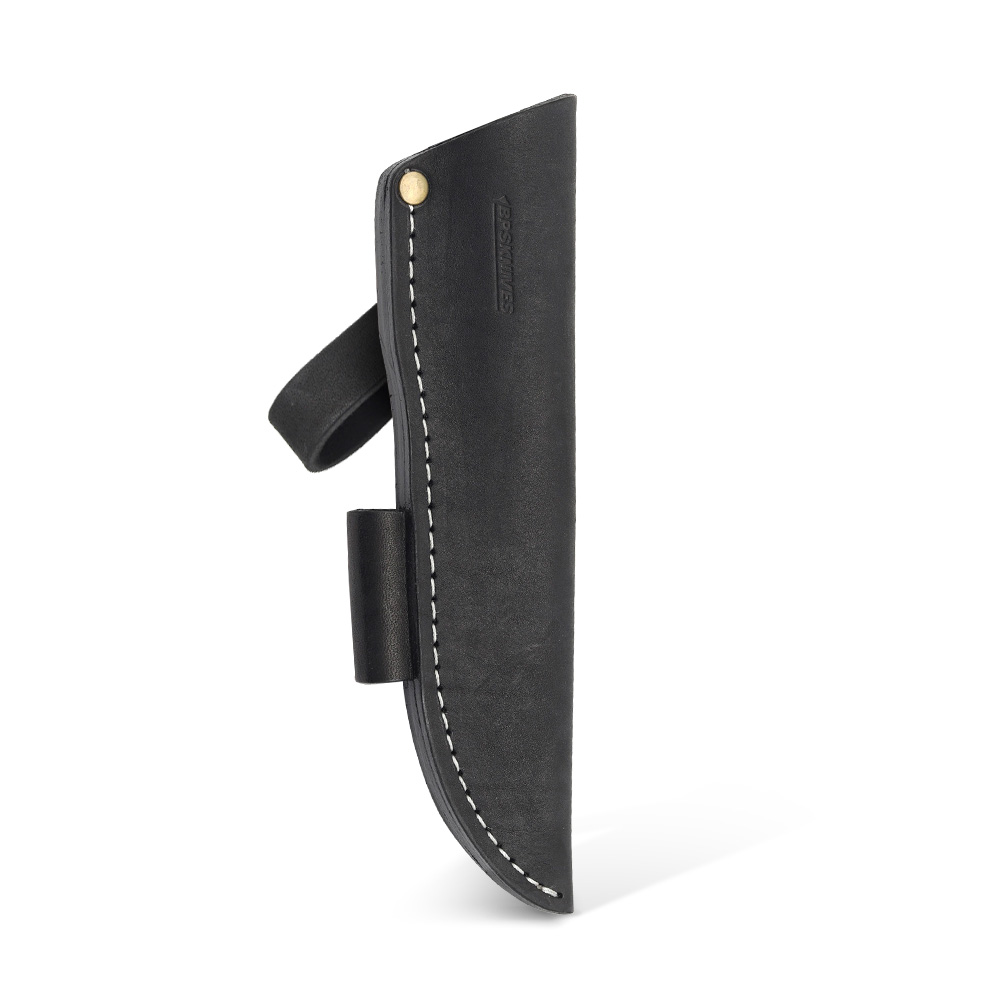 W zestawie z nożem otrzymujemy kaburę wykonaną ze skóry. Jest to klasyczne rozwiązanie pasujące stylem do narzędzia w niej się znajdującego. Drewno i skóra od zawsze stanowią idealne połączenie. Jasne przeszycia na skórze nadają jej bardzo oryginalnego wyglądu. Pochwa noża ma wysoki profil i chowa w sobie część rękojeści by lepiej zabezpieczać nóż przed wypadnięciem. Mocowana jest tradycyjnie do pasa w pozycji pionowej. Pochwa posiada też szlufkę na krzesiwo (w zestawie).