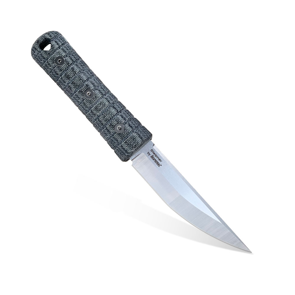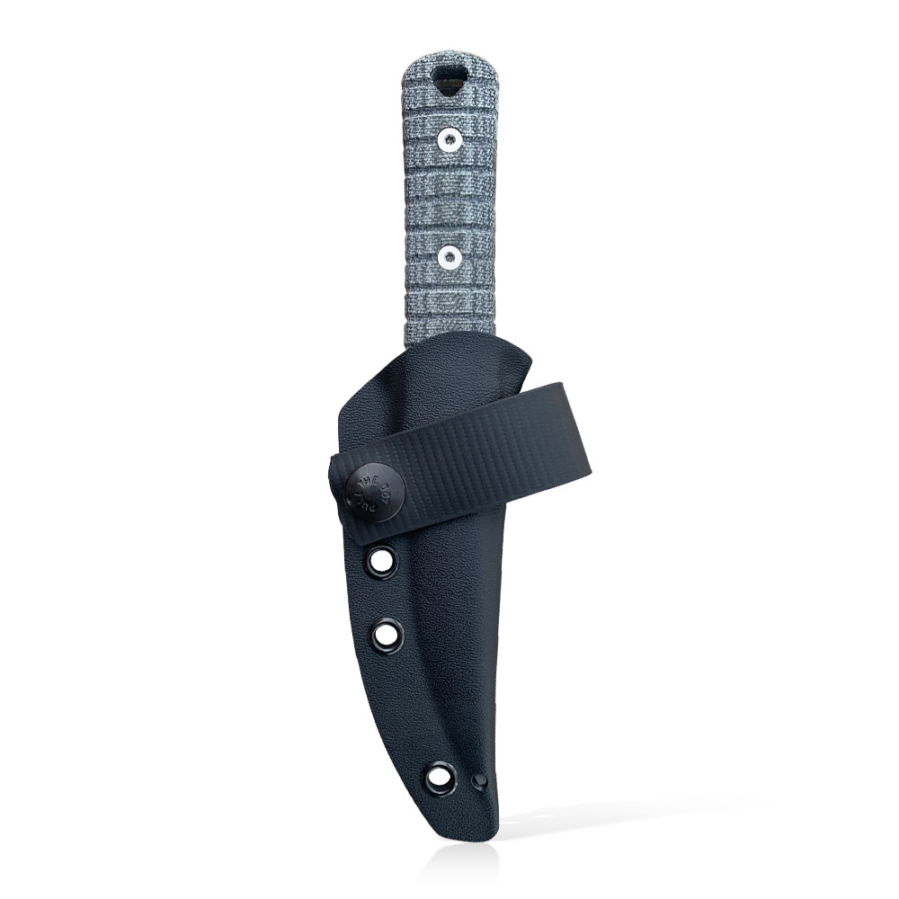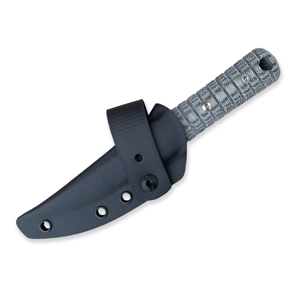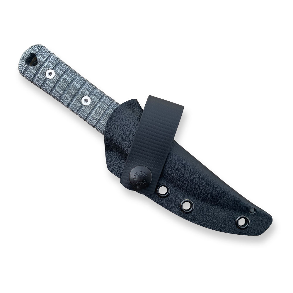 Seria OZM to kompaktowe noże z ostrzem stałym z naszym klasycznym szlifem Osoraku Zukuri. Wydajne ostrze ze stali Sleipner, rękojeścią z płóciennej micarty, wraz z ukrytym w niej trzpieniem, tworzą opływowy pakiet, który pozostaje wierny klasycznemu japońskiemu wzornictwu. Wypukła śruba po zewnętrznej stronie rękojeści umożliwia indeksowanie w taki sam sposób, jak tradycyjna rękojeść ze skóry rayskin, naśladująca węzeł cesarski. Kabura Kydex została fachowo wykonana przez TRC Knives i jest wyposażona w pętelkę z zatrzaskiem Pull-the-DOT, co zapewnia szereg opcji noszenia. Jest to wysokiej jakości kompaktowe ostrze do użytku w EDC i outdoorowego.
