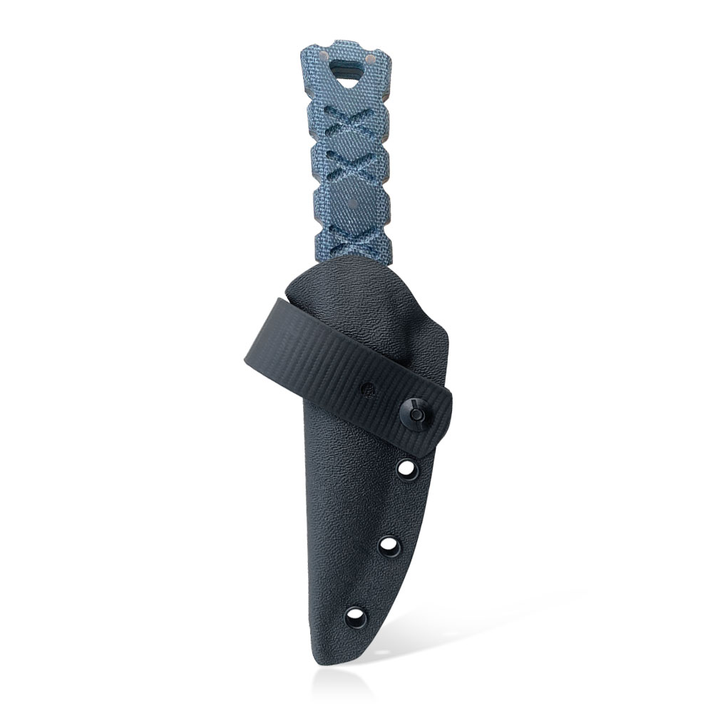 W zestawie z nożem otrzymujemy kaburę z ręcznie formowanego tworzywa Kydex w kolorze czarnym. Dla ułatwienia w wyjmowaniu noża, który bardzo dobrze opina ciasno dopasowane tworzywo zaplanowano podporę na kciuk, dzięki której nóż możemy wyjąć w sposób kontrolowany i bezpieczny. Sam Kydex cechuje się wysoką odpornością na uderzenia, zarysowania, charakteryzuje się niską chłonnością wilgoci, odpornością na różnorodne warunki atmosferyczne oraz wiele środków chemicznych. Kabury z niego wykonane użytkujemy wygodnie i długotrwale. Kabura zaopatrzona została w 4 piny przelotowe, przez które w razie potrzeby przewlekamy linkę, czy paracord służące do przenoszenia noża na szyi (jako neck), lub przy pasku w pozycji poziomej lub pionowej w zależności od preferencji użytkownika. Dla prostego i szybkiego montażu kabura została zaopatrzona w dodatkową przelotkę (szlufkę na pasek).NAZWA: Williams Blade Design SZM001 Shobu Zukuri Mini Kaiken 3.5″