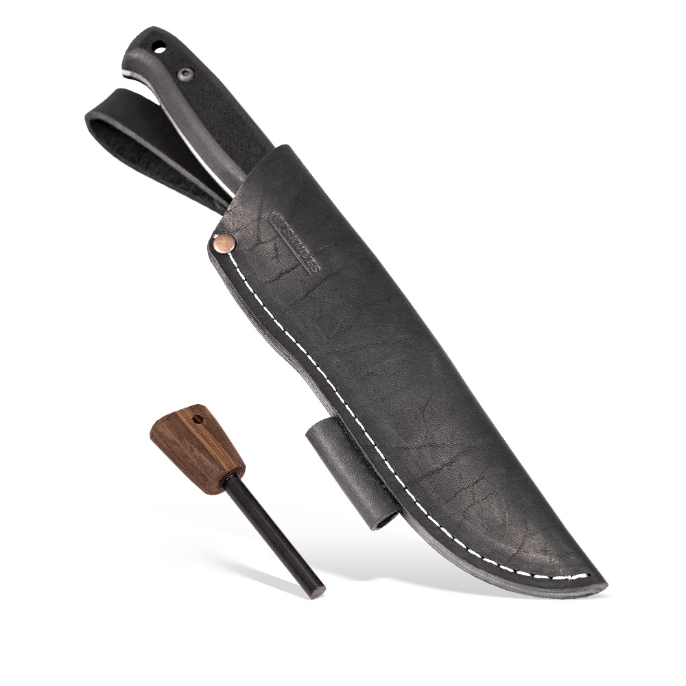 - Pochwa: Czarna skórzana z uchwytem na krzesiwo