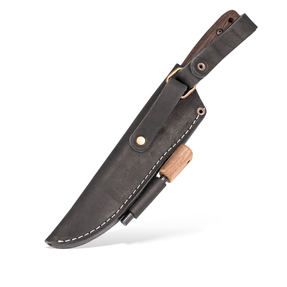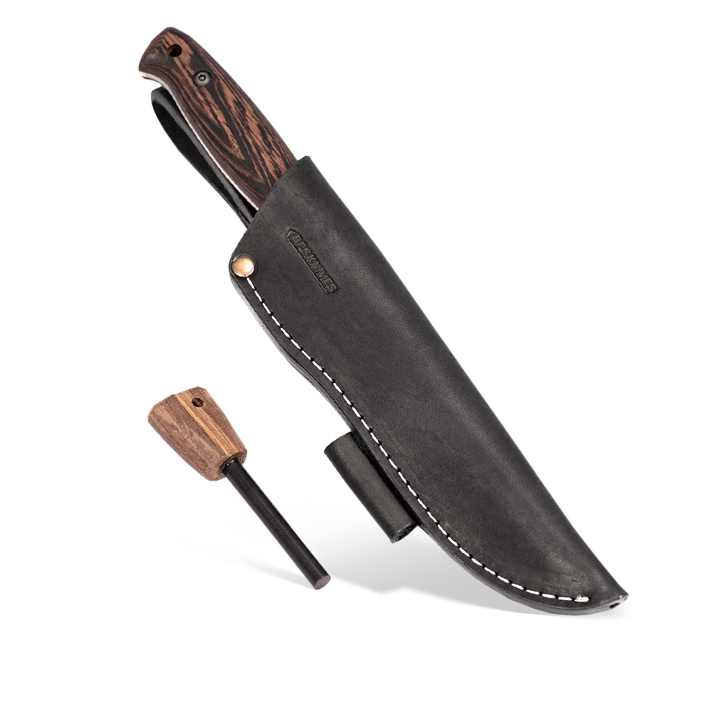 Nóż Wyprawowy BPS Knives Adventurer Vanera z Krzesiwem – Wersja Limitowana | Stal 1066 Drewno Wenge Czarna Skórzana Pochwa