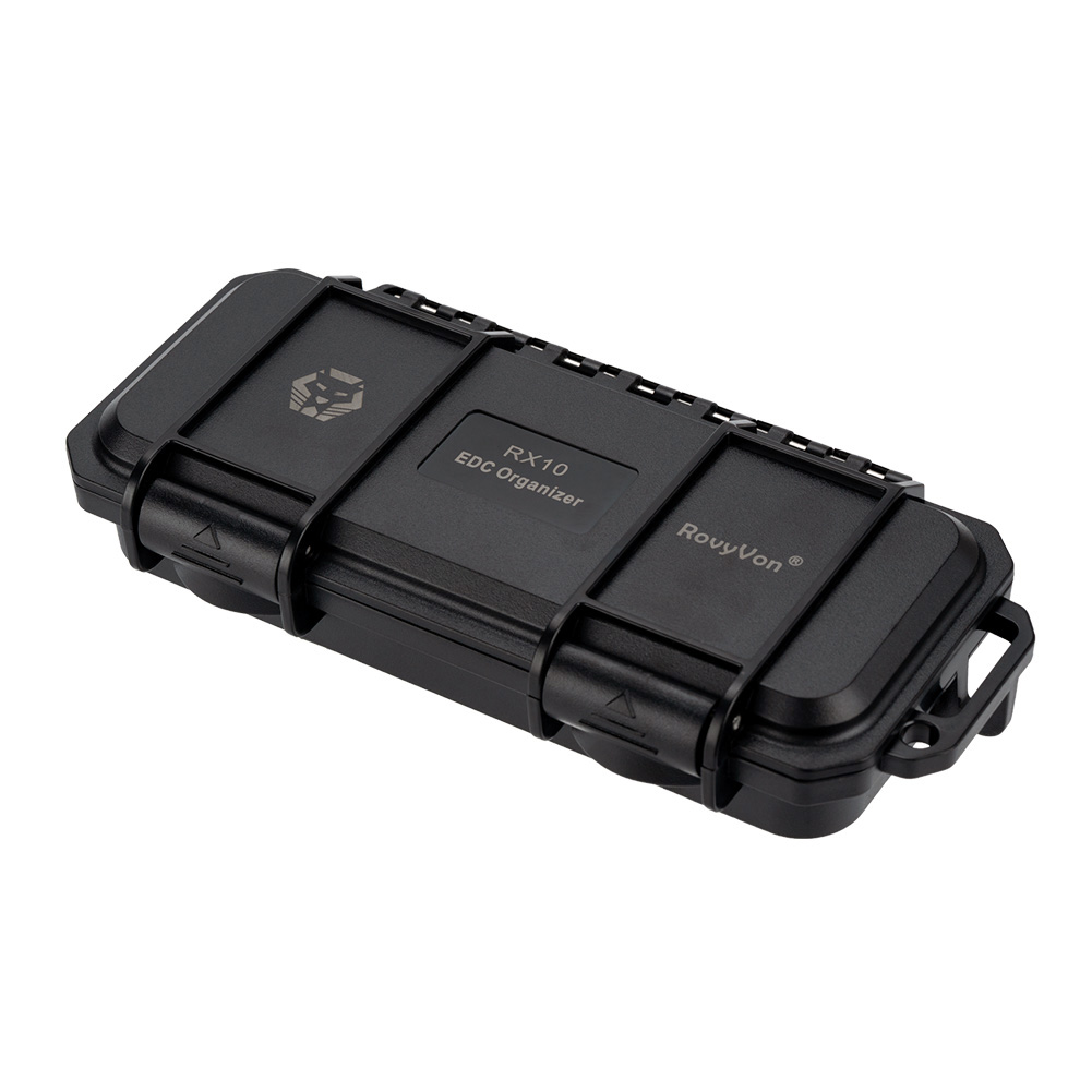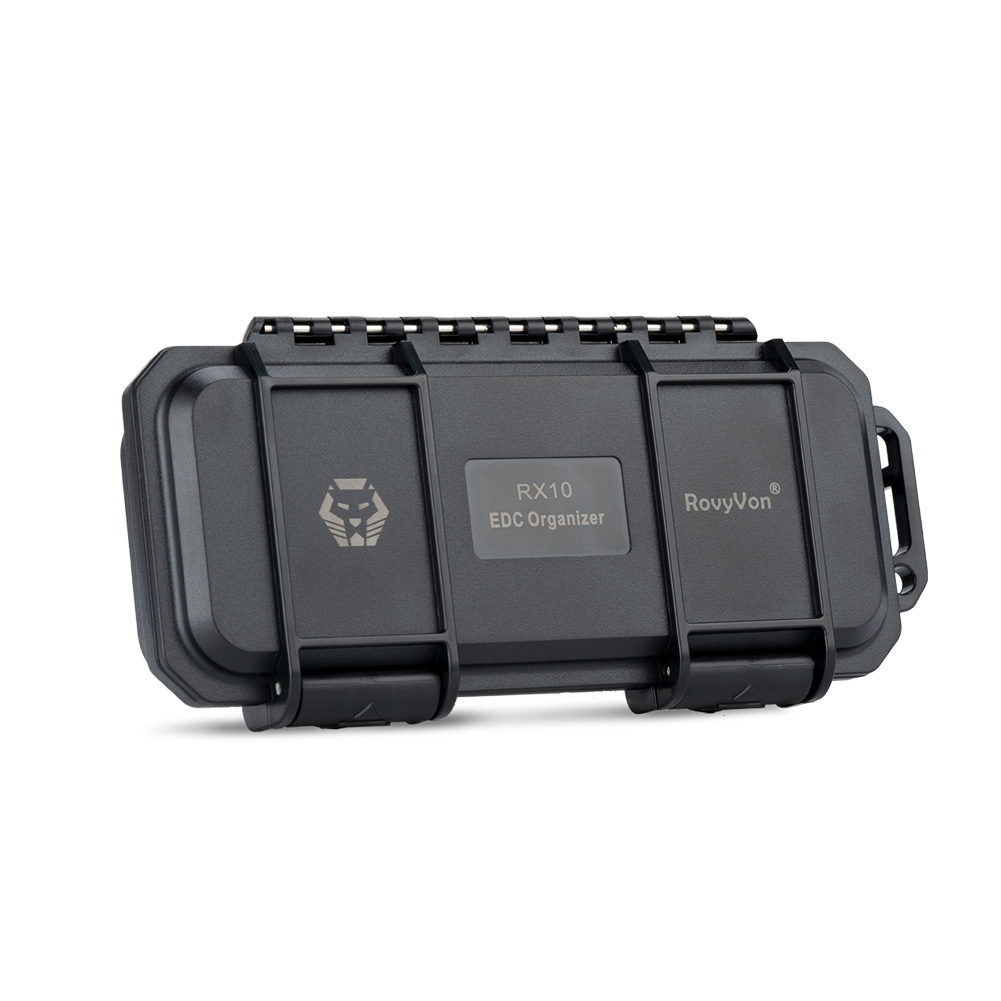 Organizer RX10 RovyVon® produkowany jest w dwóch wersjach. Wersja czarna, chroni przechowywane elementy przed światłem oraz uniemożliwia szybkie zweryfikowanie czy znajduje się w nim zawartość. Wersja półprzezroczysta daje możliwość weryfikacji już na pierwszy rzut oka czy organizer jest wypełniony i również chroni przed światłem, ale w mniejszym stopniu niż czarna.NAZWA: Organizer EDC RX10