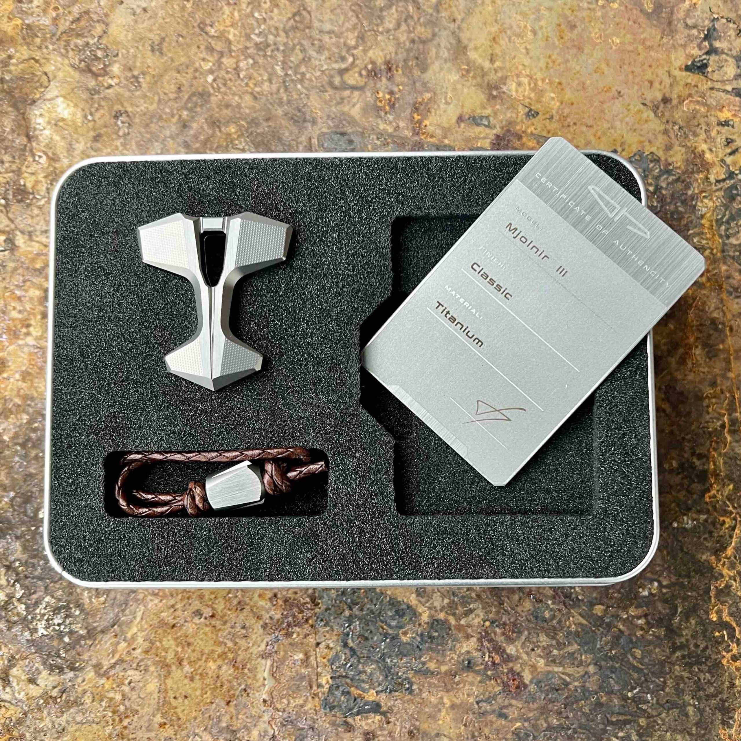 Mjolnir III to ewolucja dwóch poprzednich wersji gadżetu, która światło dzienne finalnie ujrzała w maju 2021. Od tamtej pory, tak jak wersja II cieszy się niezmienną popularnością. Projektowana, udoskonalana i planowana kilka miesięcy wcześniej zadziwia równowagą geometryczną oraz precyzją wykonania, którą każdorazowo twórca weryfikuje lustracją przez mikroskop. Z pozoru niewielka całość zawiera wiele krzywizn, płaszczyzn, załamań, fazowań wykonywanych za pomocą samodzielnie zaprojektowanych i skonstruowanych narzędzi. Każda z tych płaszczyzn i kształtów, włączając format i umiejscowienie wygrawerowanego i przeprojektowanego w stosunku do wersji II loga, jest elementem składowym harmonicznej całości. Zauważalna symetria w konstrukcji dominuje nad całością projektu.