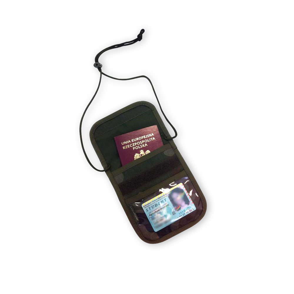 Schowana pod ubraniem pozostaje niewidoczna dla osób postronnych i co więcej nie jest możliwe wyrwanie jej z ręki tak, jak w przypadku torebki. Paszportówka posiada sznurek ze stopererm, dzięki czemu możemy łatwo dopasować jego długość do naszego wzrostu. Frontowa kieszeń z okienkiem pozwala w widoczny sposób nosić np. identyfikator lub bilet, który musimy mieć zawsze na wierzchu. Dodatkowo panel ID z miękkim rzepem na zewnętrznej klapie daje nam możliwość spersonalizowania naszej paszportówki poprzez doczepienie popularnych morale patches lub ulubionych narzepek.